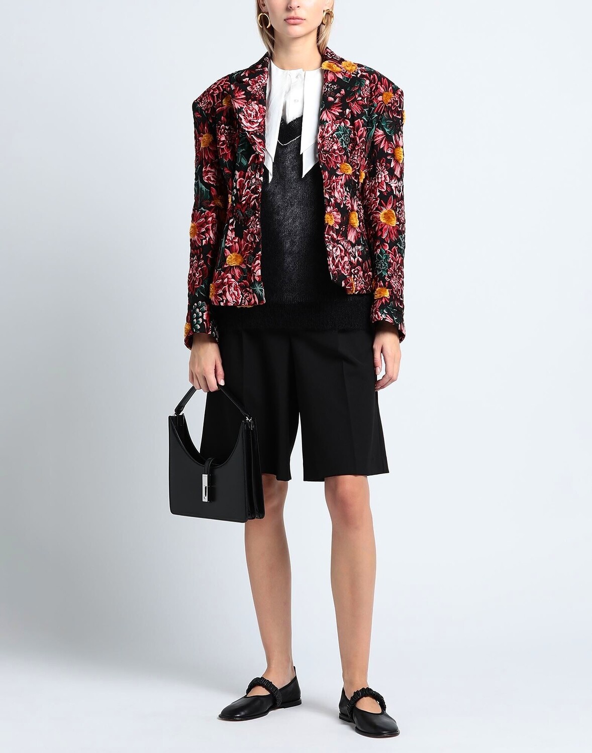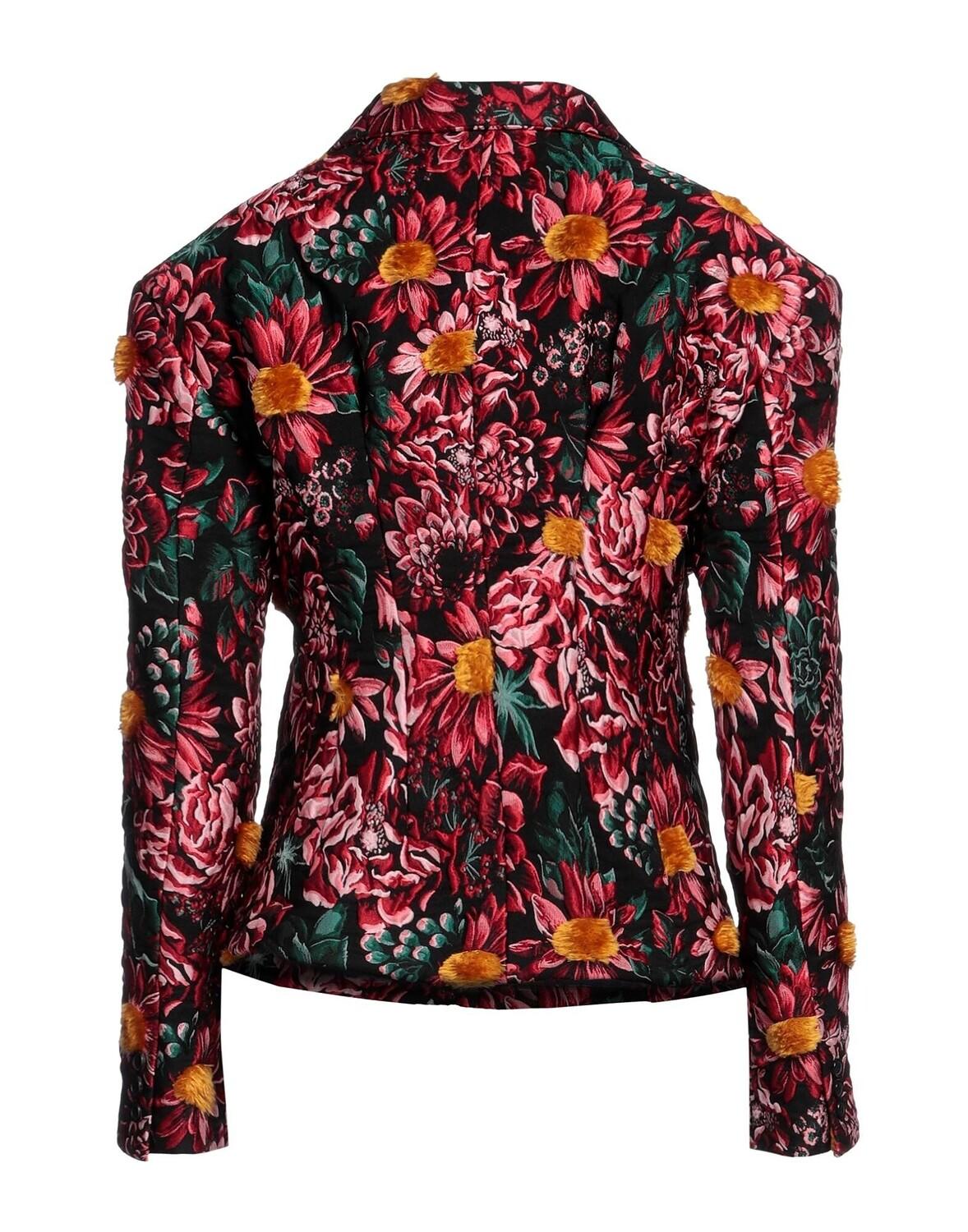 Парча, без аппликаций, цветочный узор, воротник с лацканами, однобортный, длинные рукава, на подкладке, на пуговицах, без карманов, однобортный пиджак