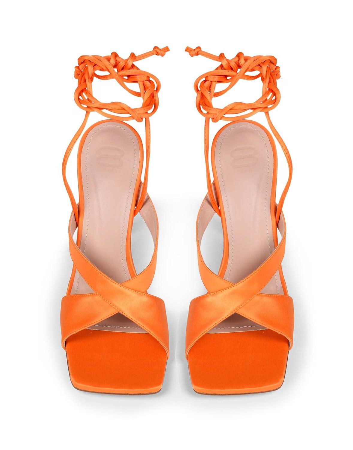 Эти атласные босоножки итальянского производства выделяются квадратным носком и тканой передней частью. Они имеют кожаную подошву и открытую спину, дополнены каблуком-шпилькой и шнурками, завязывающимися на щиколотке. Доступно больше цветов.