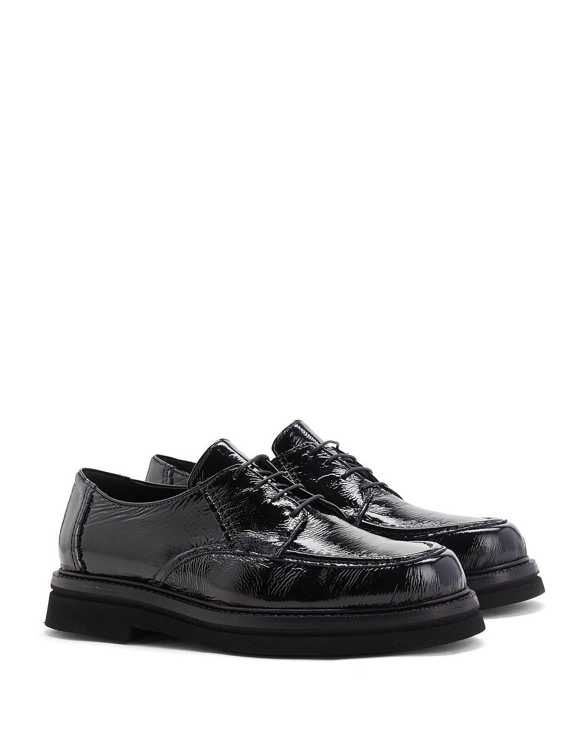 Эффект лака, без аппликаций, одноцветное изделие, подкладка из кожи, скругленный носок, без каблука, резиновая подошва, содержит нетекстильные части животного происхождения, шнуровка