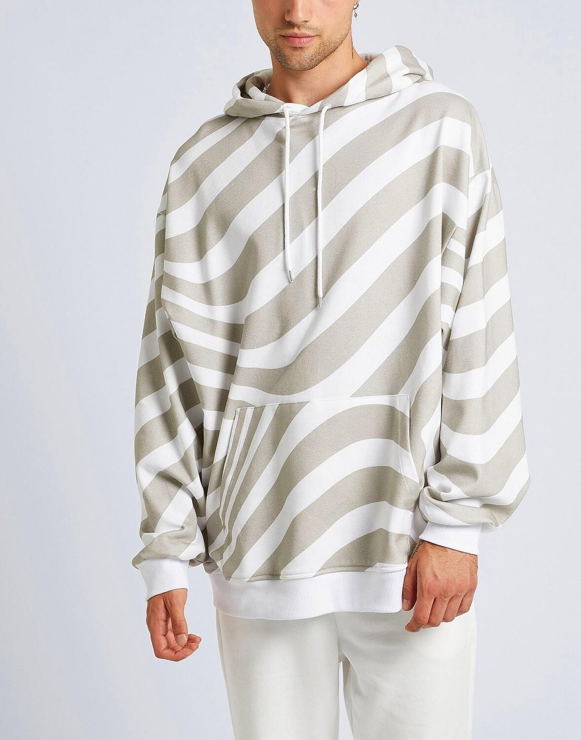 Толстовка флис, без аппликаций, в полоску, воротник с капюшоном, длинные рукава, ребристые манжеты, подкладка из махровой ткани, один карман