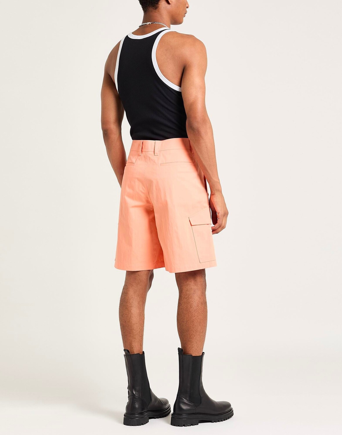 Ткань, логотип бренда, декорирование, одноцветное изделие с аппликациями, завышенная талия, свободный крой, застежка-молния, кнопки, множество карманов, химчистка, нельзя отбеливать, нельзя сушить в стиральной машине, шорты карго