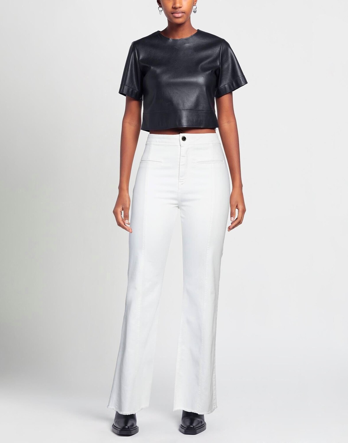 Габардин, без аппликаций, одноцветное изделие, средняя посадка, широкая брючина, классический крой, без подкладки, 1 пуговица, застежка-молния, манжеты с бахромой, два нагрудных кармана, стрейч, брюки