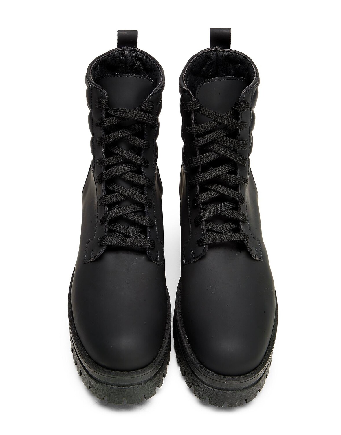 Эти армейские ботинки из технической ткани с покрытием отличаются высокой износостойкостью. Резиновая подошва с выступами и прочный верх на шнуровке с кожаной изнанкой придают им спортивный вид. Сделано в Италии, с круглым носком и оригинальной ромбовидной стежкой.