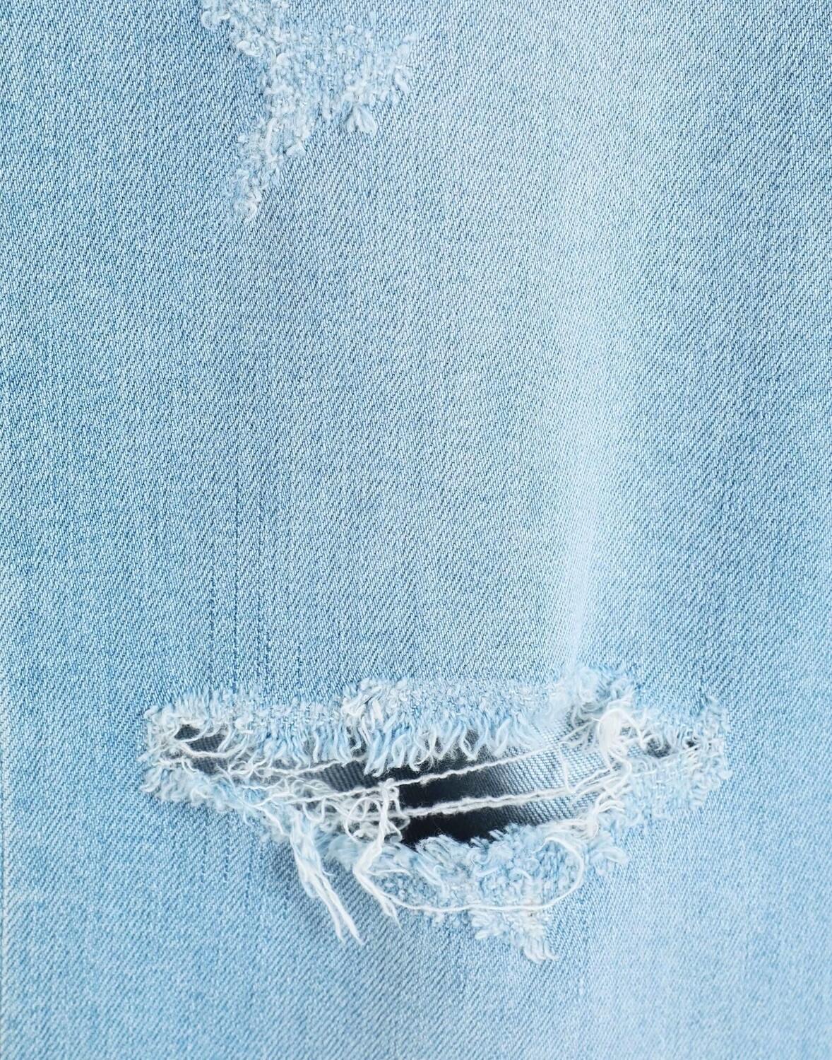 Джинсовая ткань, Одноцветное изделие, Классический крой, Прямые брючины, Рваная ткань, Множество карманов