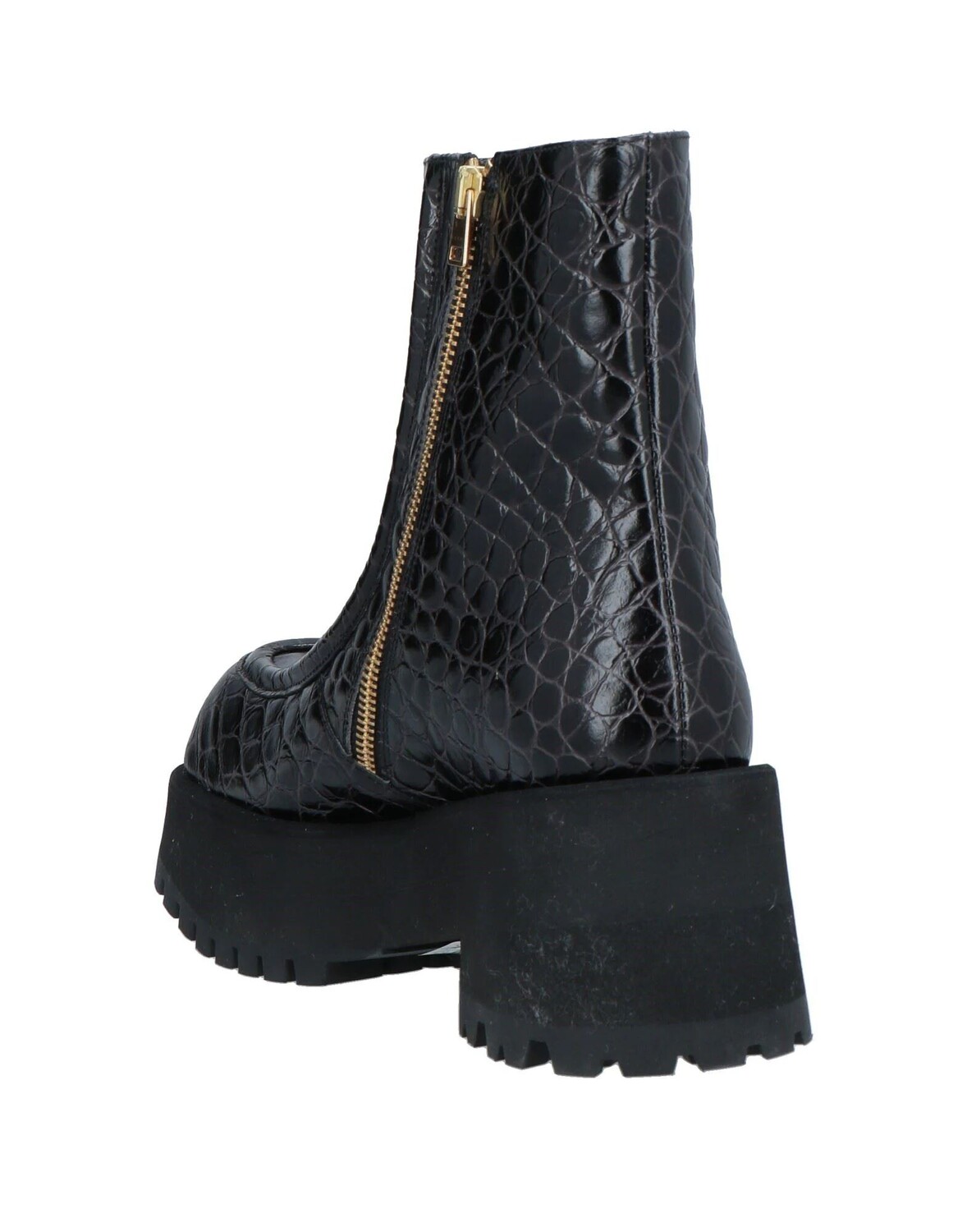 Кожа, крокодиловый принт, без аппликаций, одноцветное изделие, кожаная подкладка, застежка-молния, квадратный носок, квадратный каблук, резиновая рифленая подошва, содержит нетекстильные части животного происхождения, массивные ботинки