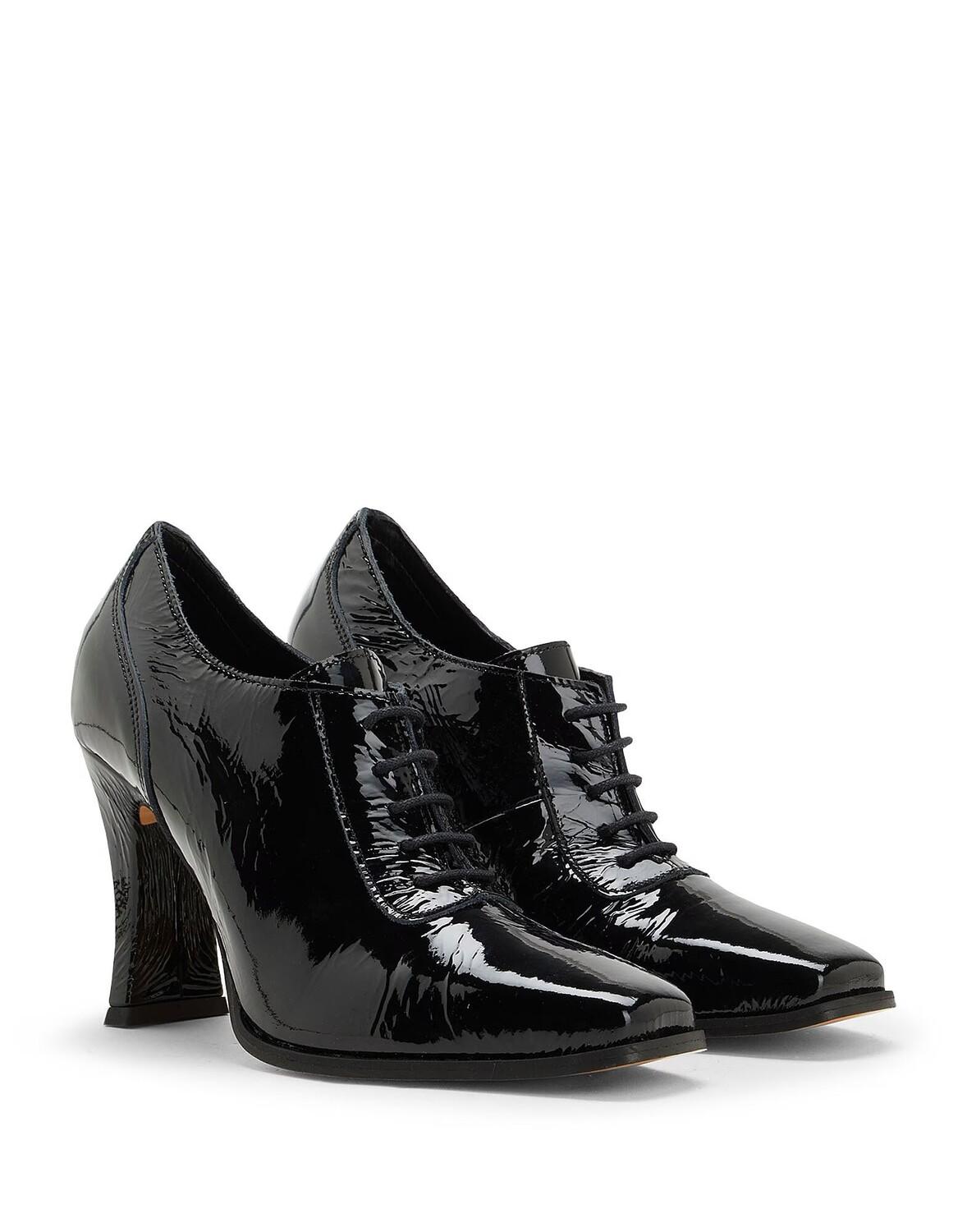 Кожа, эффект лака, без аппликаций, одноцветное изделие, внутри кожаная, квадратный носок, геометрический каблук, обтянутый каблук, резиновая подошва, содержит нетекстильные части животного происхождения, обувь на шнуровке