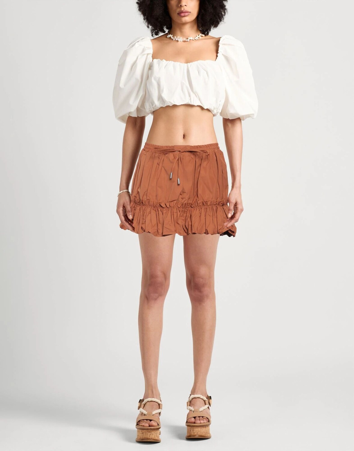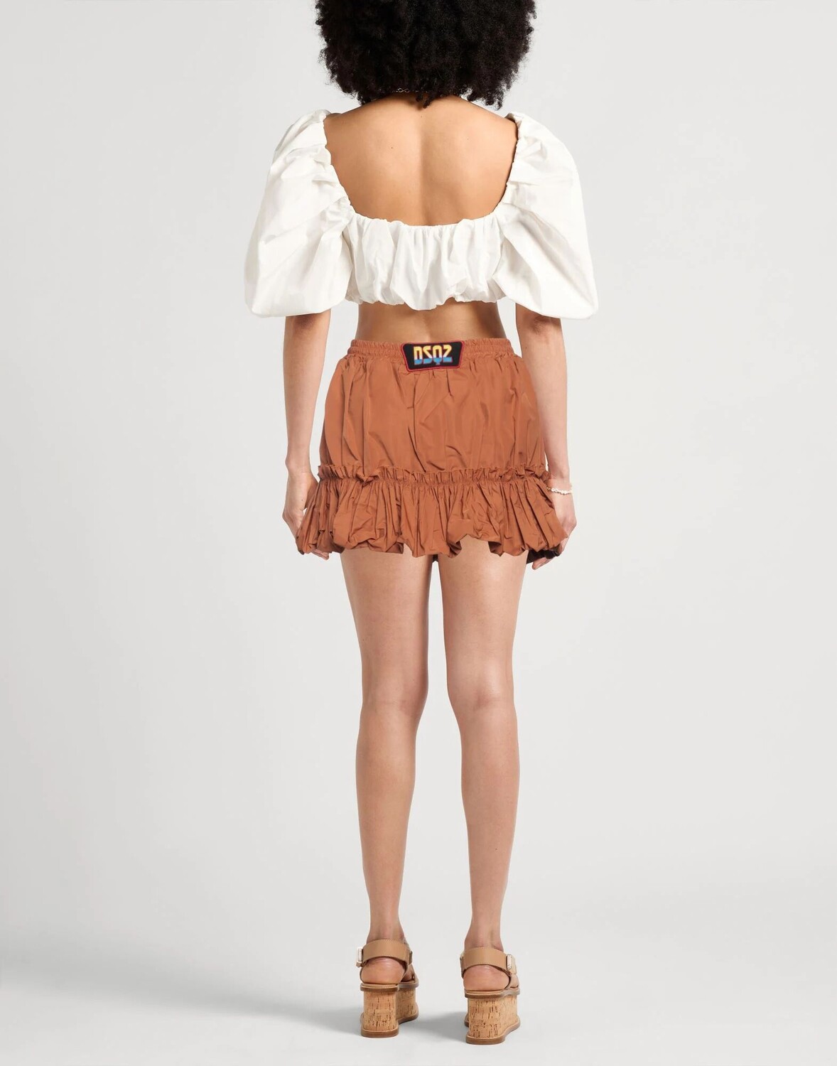 Тафта, логотип бренда, оборки, одноцветное изделие с аппликациями, талия на резинке, полностью на подкладке, застежка на шнурке, без карманов, не стирать, не отбеливать, не сушить в стиральной машине, не гладить, юбка-баллон