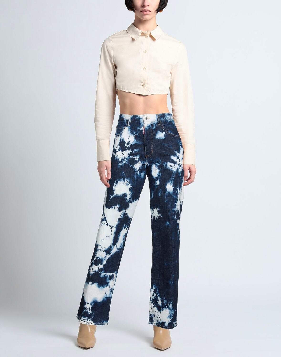Джинсовая ткань, выцветший, логотип бренда, одноцветное изделие, темная стирка, высокая талия, стандартный крой, застежка на пуговицы, стрейч, машинная стирка, нельзя сушить в машине, широкие джинсы