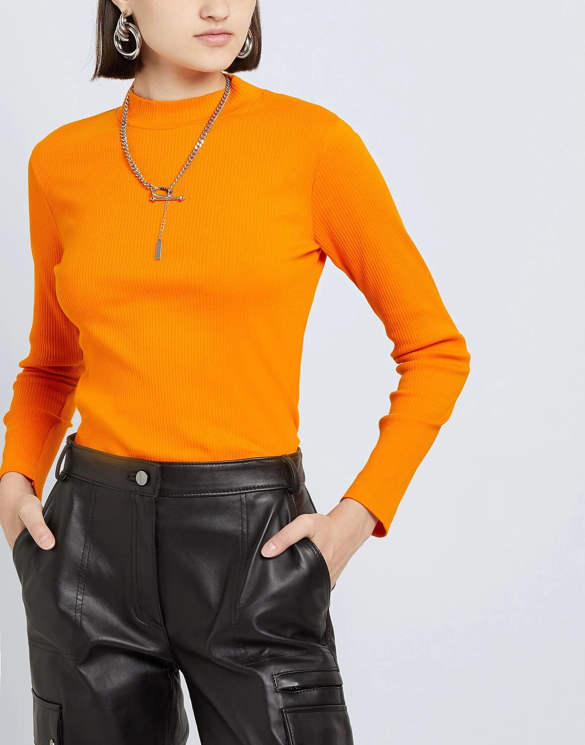 Трикотаж, в рубчик, без аппликаций, одноцветное изделие, воротник-стойка, длинные рукава, стрейч, топ