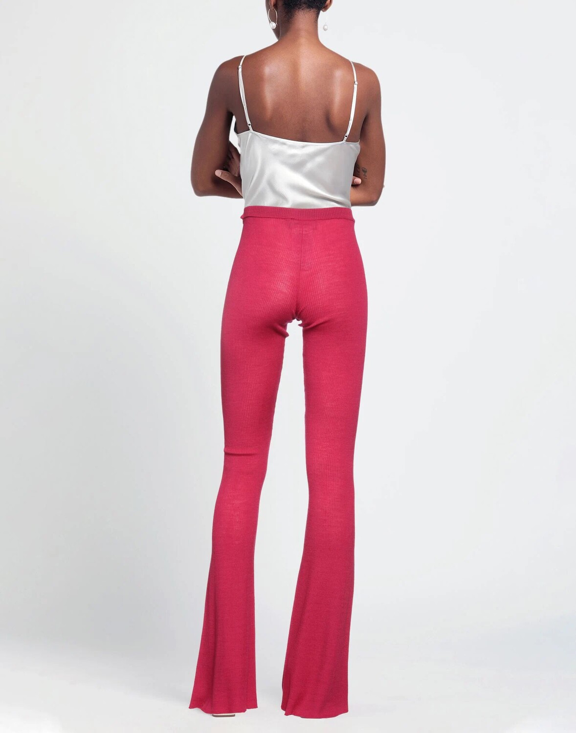 Брюки трикотажные, облегченной вязки, логотип бренда, одноцветное изделие, средняя посадка, резинка на талии, расклешенный крой, удобная посадка, без карманов