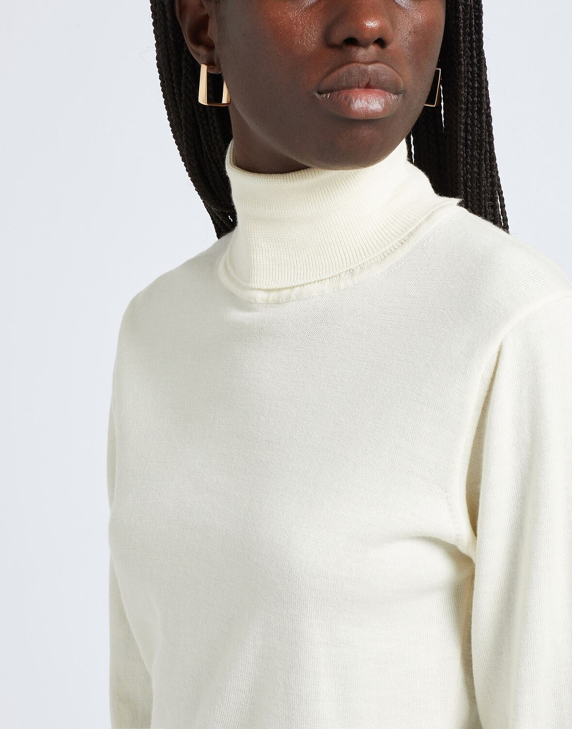 Эта водолазка из 100% мериносовой шерсти станет незаменимым предметом гардероба и согреет вас. Сделано в Италии, это очень тонкое трикотажное изделие нежно облегает силуэт. Идеально подходит под куртку. Эта вещь изготовлена из сертифицированной шерсти с ферм, которые обеспечивают комплексное уважение к благополучию животных и передовые методы управления и защиты земель. На модели итальянский размер S/40.