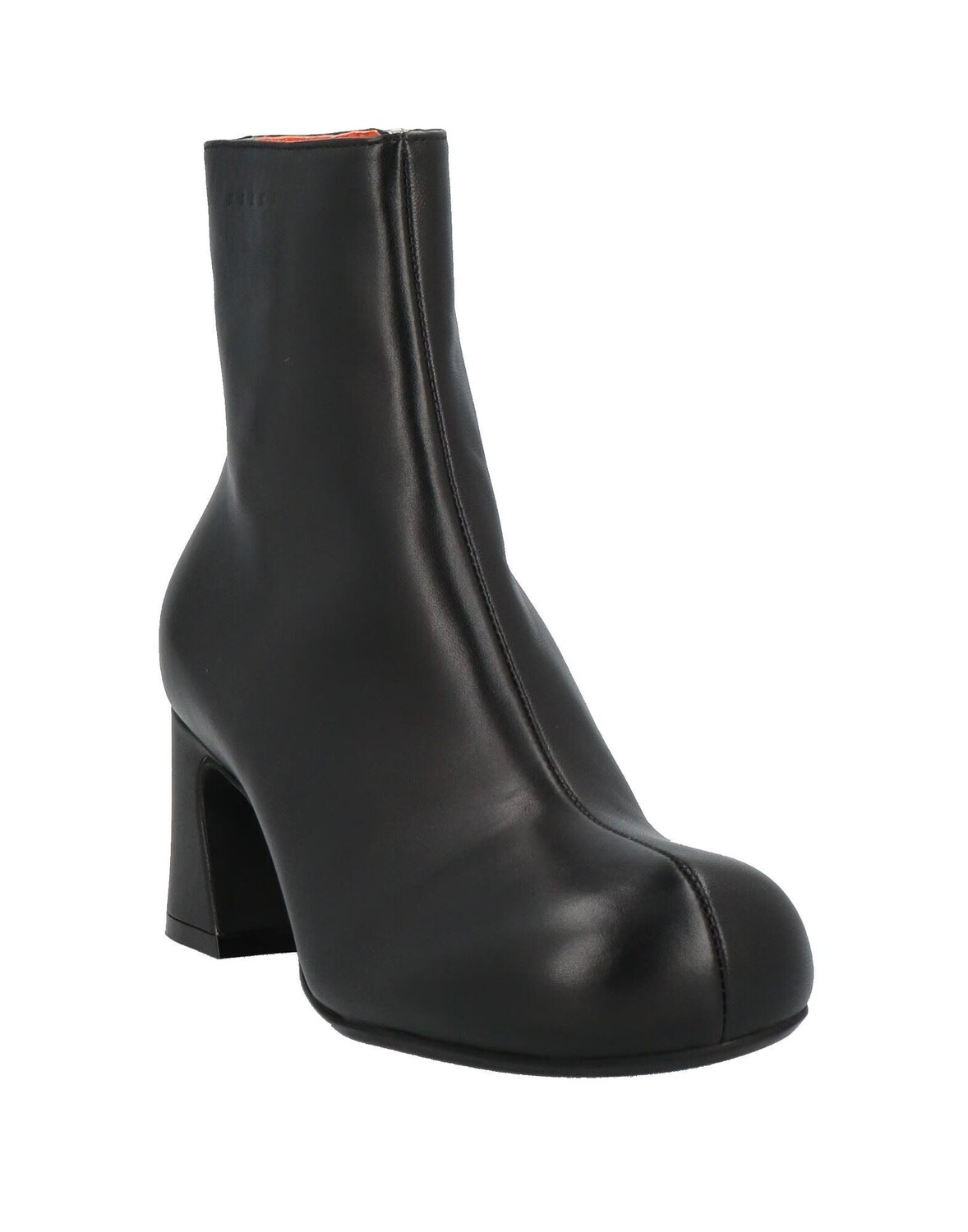 Кожа, логотип бренда, одноцветное изделие, кожаная подкладка, застежка-молния, скругленный носок, геометрический каблук, обтянутый каблук, резиновая подошва, содержит нетекстильные части животного происхождения, ботильоны