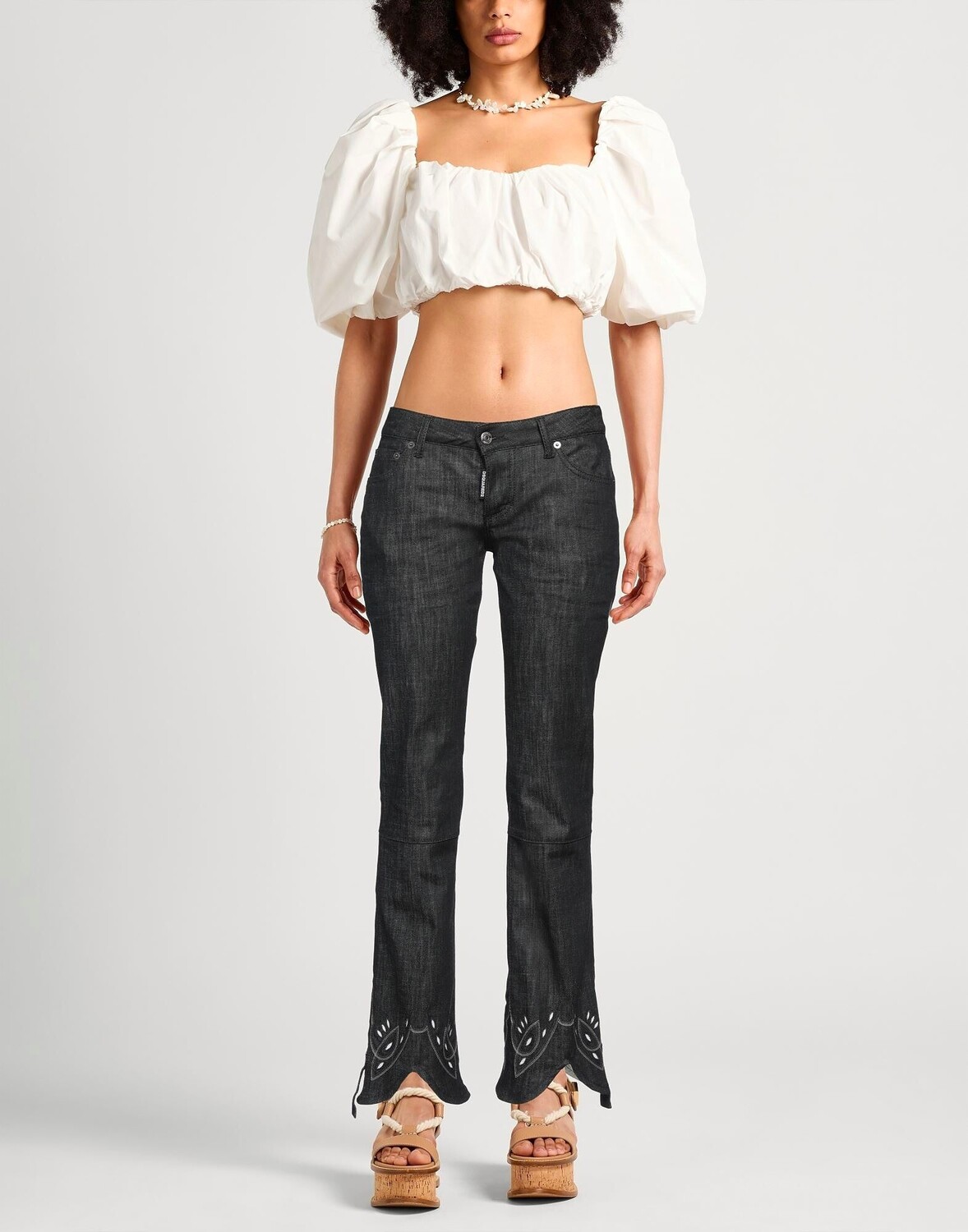 Джинсовая ткань, логотип бренда, вышивка, одноцветное изделие, цветная стирка, заниженная талия, шлевки для ремня, стандартный крой, застежка на пуговицы, множество карманов, эластичный, не подвергать химчистке, не отбеливать, не сушить в стиральной машине, не гладить, прямые брючины джинсы