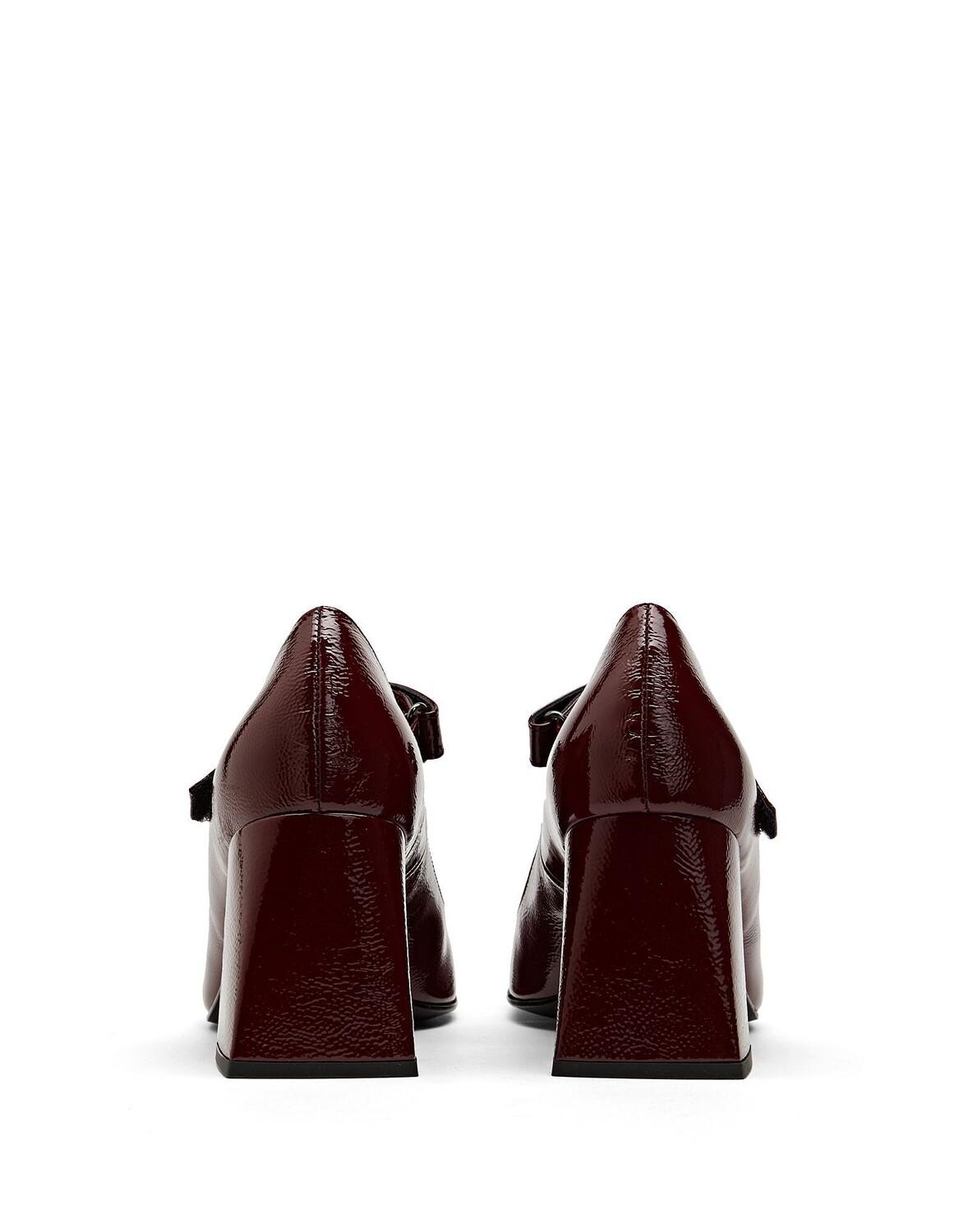 Кожа, эффект лака, без аппликаций, одноцветное изделие, кожаная подкладка, застежка-липучка, квадратный носок, геометрический каблук, резиновая подошва, содержит нетекстильные части животного происхождения, туфли Мэри Джейн