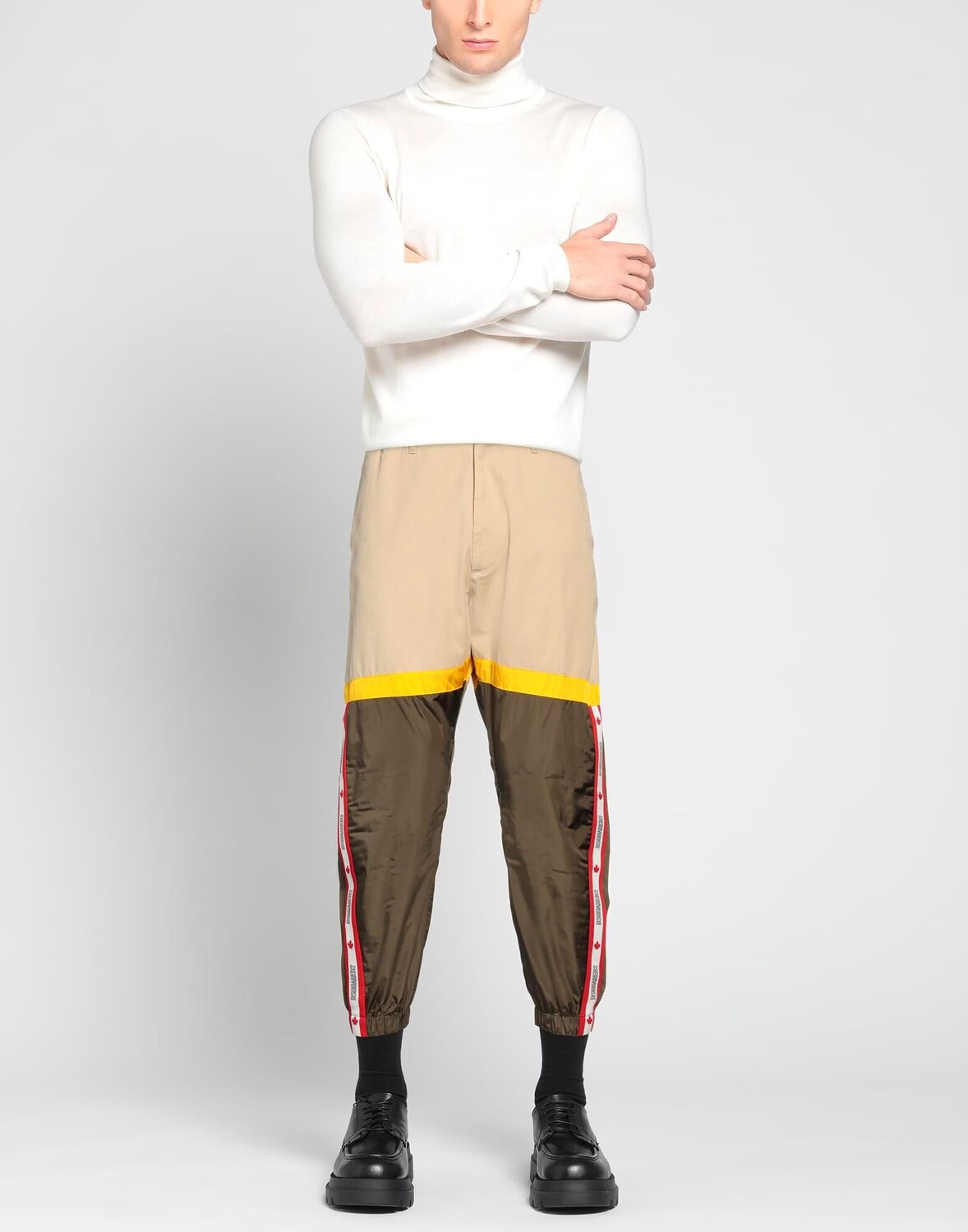Полотняное переплетение, техническая ткань, логотип бренда, разноцветный узор, высокая талия, талия на кулиске, зауженная брючина, классический крой, без подкладки, 1 пуговица, застежка-молния, с эластичным низом, множество карманов, содержит нетекстильные части животного происхождения, брюки