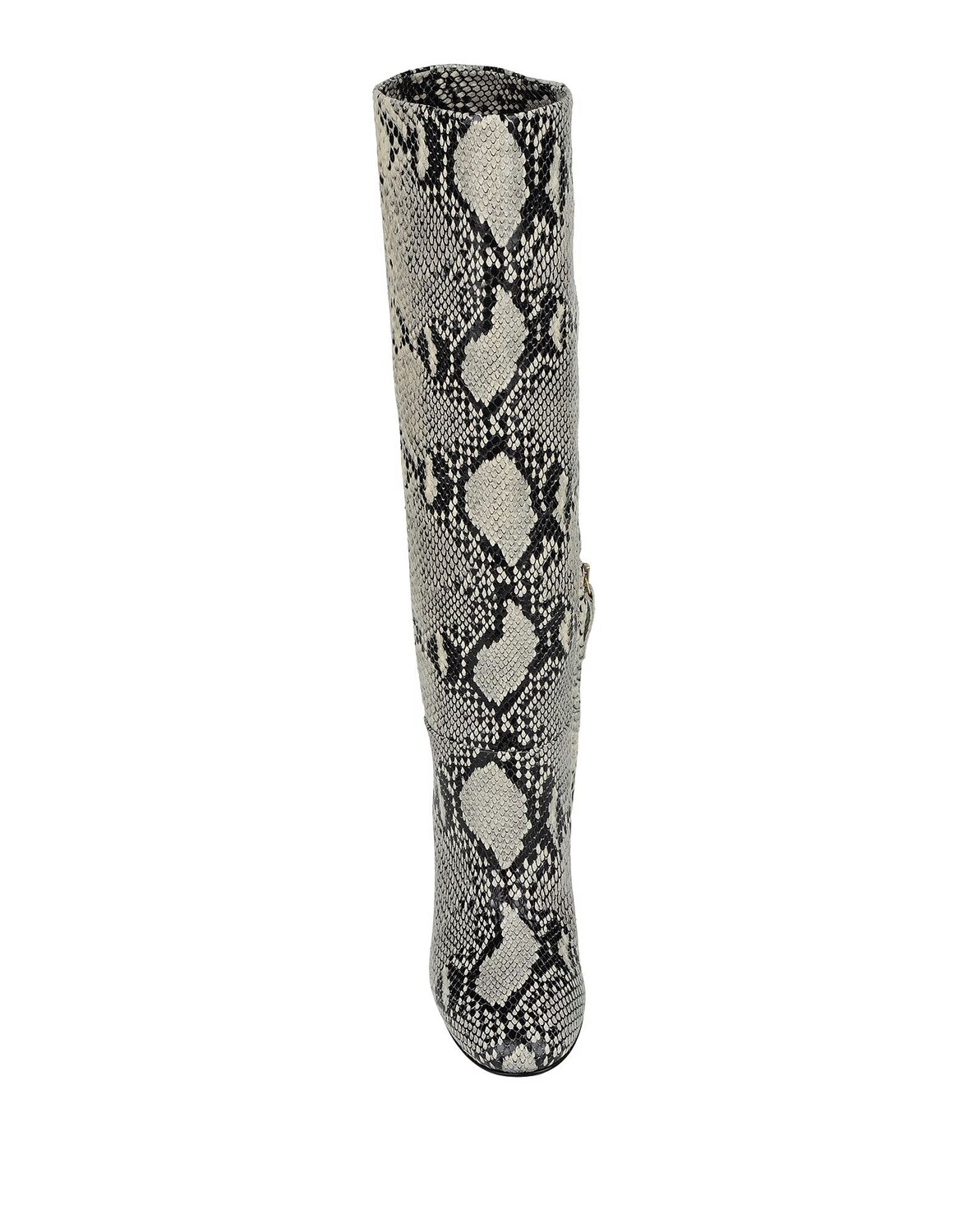 Принт под змеиную кожу, без аппликаций, двухцветное изображение, застежка-молния, скругленный носок, квадратный каблук, внутри на подкладке, кожаная подошва, содержит нетекстильные части животного происхождения