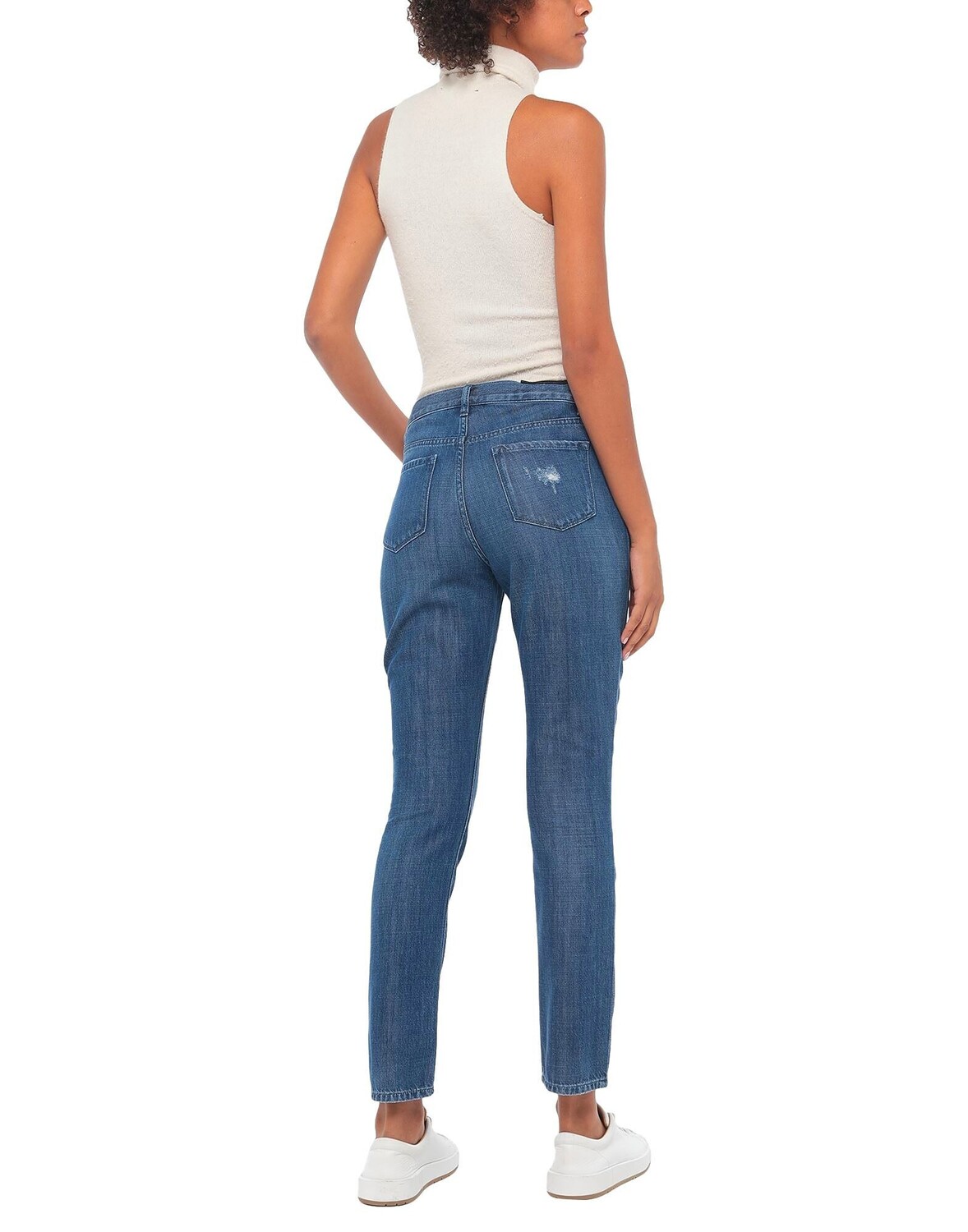 Джинсовая ткань, рваная ткань, выцветшие, металлические аппликации, крой «гарем», одноцветное изделие, удобная посадка, прямые брючины, 1 пуговица, застежка-молния, пять карманов, темный цвет