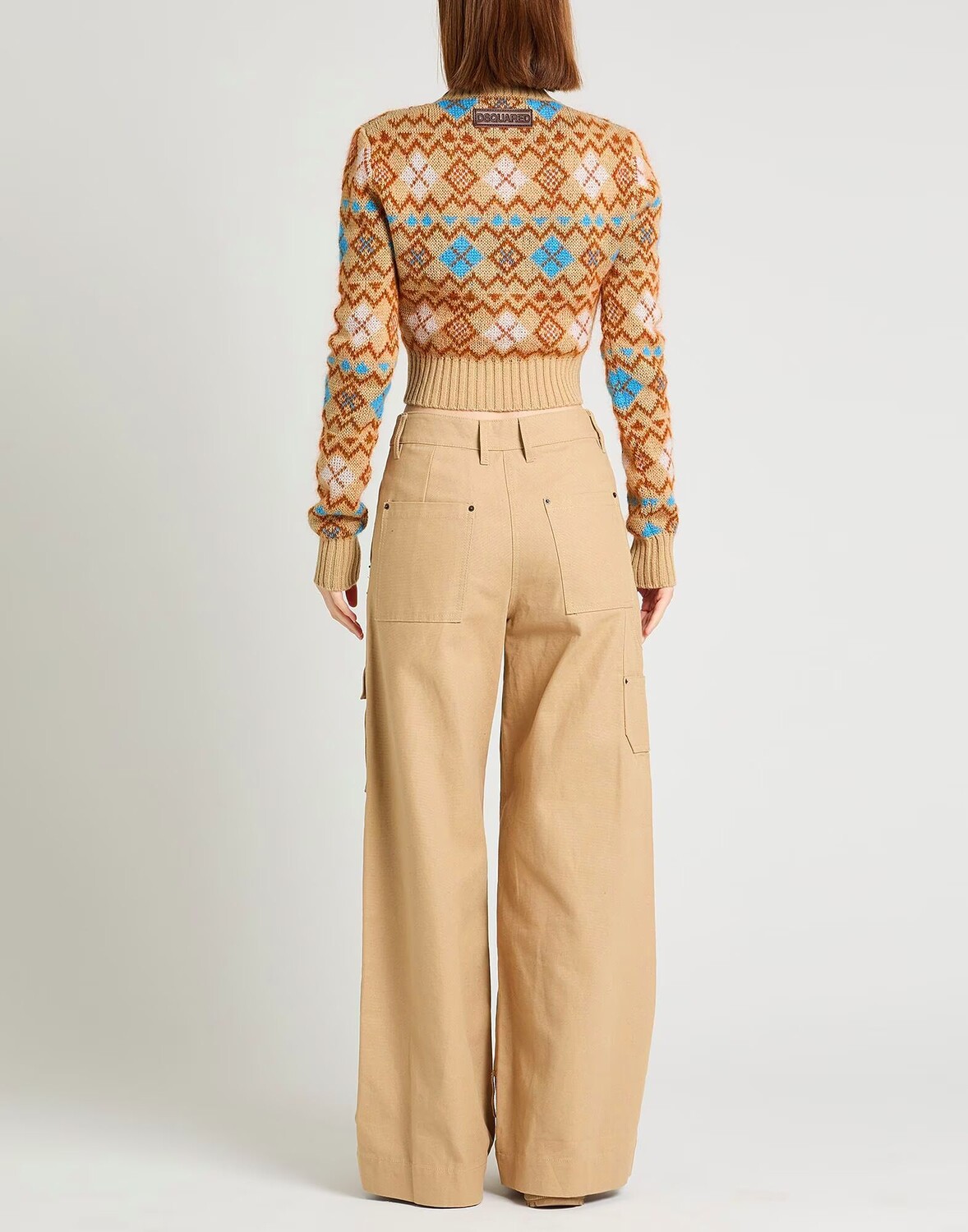 Трикотаж, средней плотности, вырез, логотип бренда, многоцветное, круглый вырез, длинные рукава, ребристые манжеты, содержит нетекстильные части животного происхождения, химчистка, нельзя отбеливать, нельзя сушить в стиральной машине
