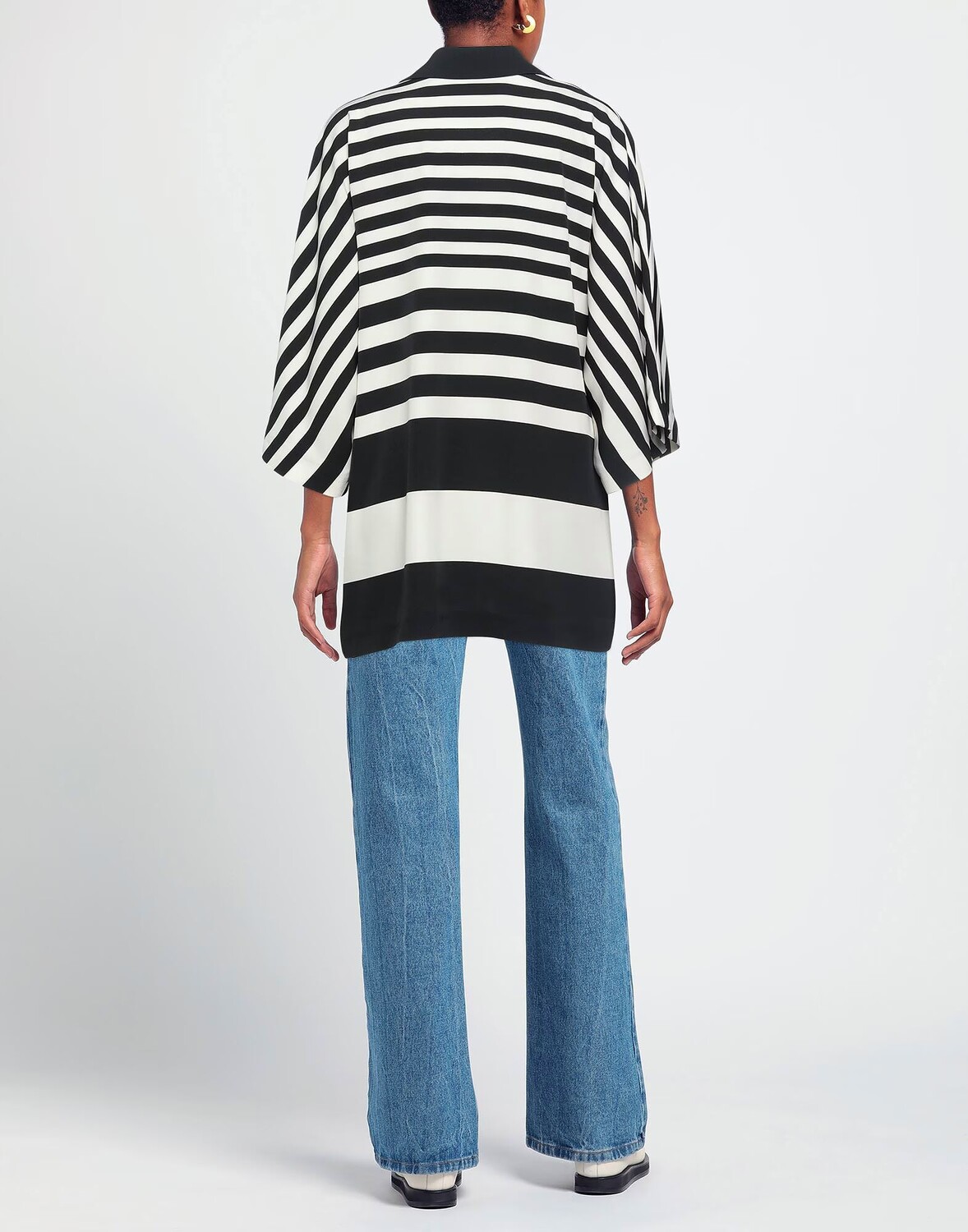 Креп, без аппликаций, в полоску, воротник с лацканами, однобортный, рукава 3/4, без подкладки, множество карманов, стрейч, однобортный пиджак
