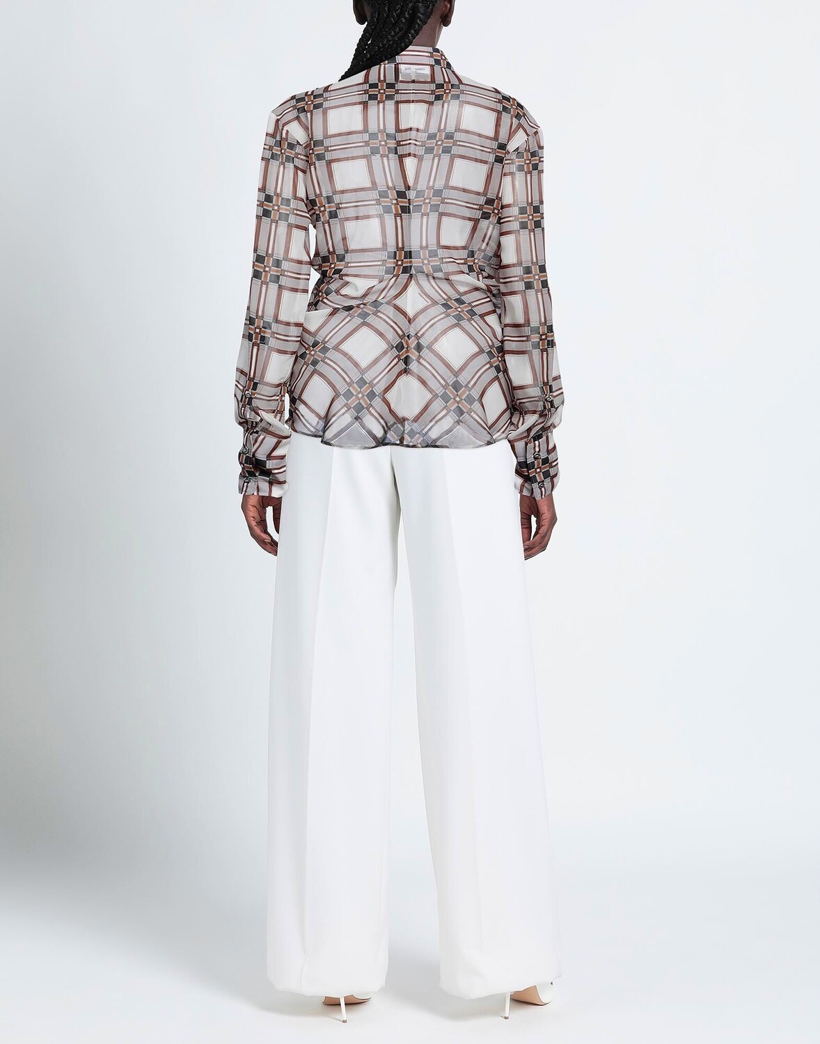Креп, логотип бренда, клетка, разноцветный узор, классический вырез горловины, длинные рукава, манжеты на пуговицах, без подкладки, пуговицы, без карманов