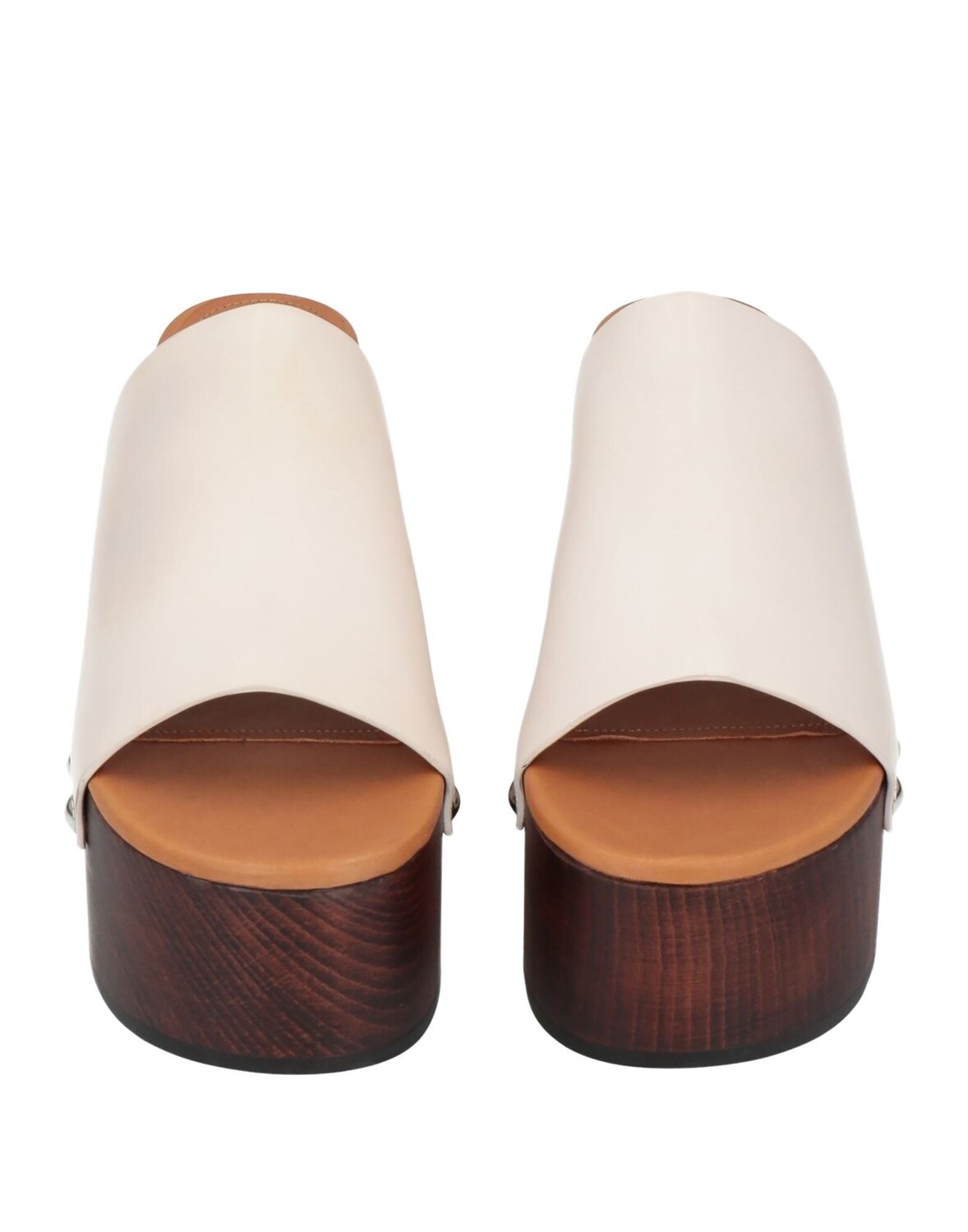 Кожа, без аппликаций, одноцветное изделие, подкладка из кожи, круглый носок, квадратный каблук, деревянный каблук, резиновая подошва, содержит нетекстильные части животного происхождения, сабо