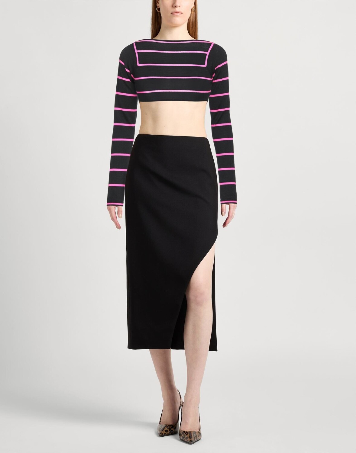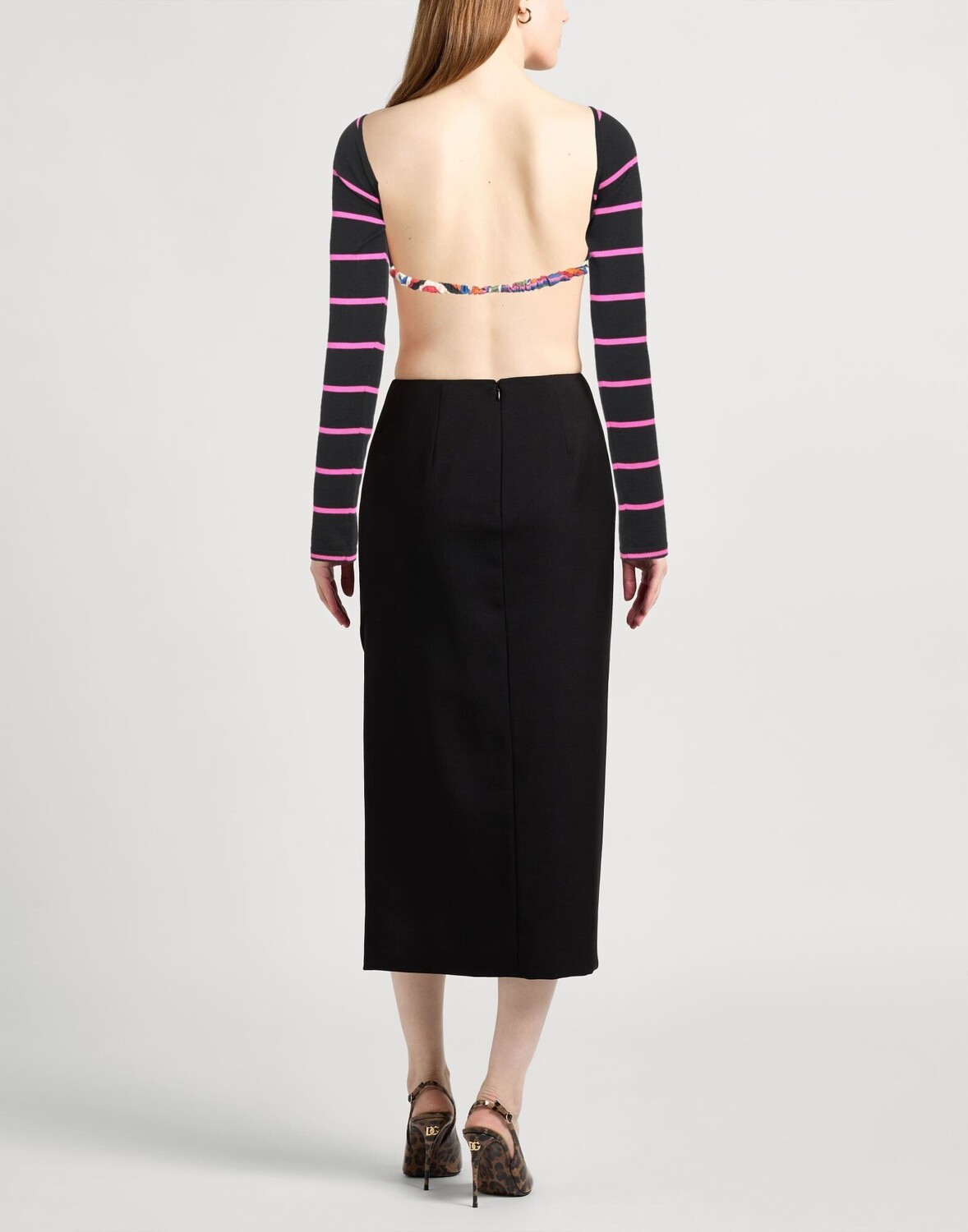 Укороченный топ, вязаный, саржа, легкая вязка, открытая спина, в полоску, вырез «лодочка», длинные рукава, без карманов, ручная стирка, нельзя сушить в стиральной машине