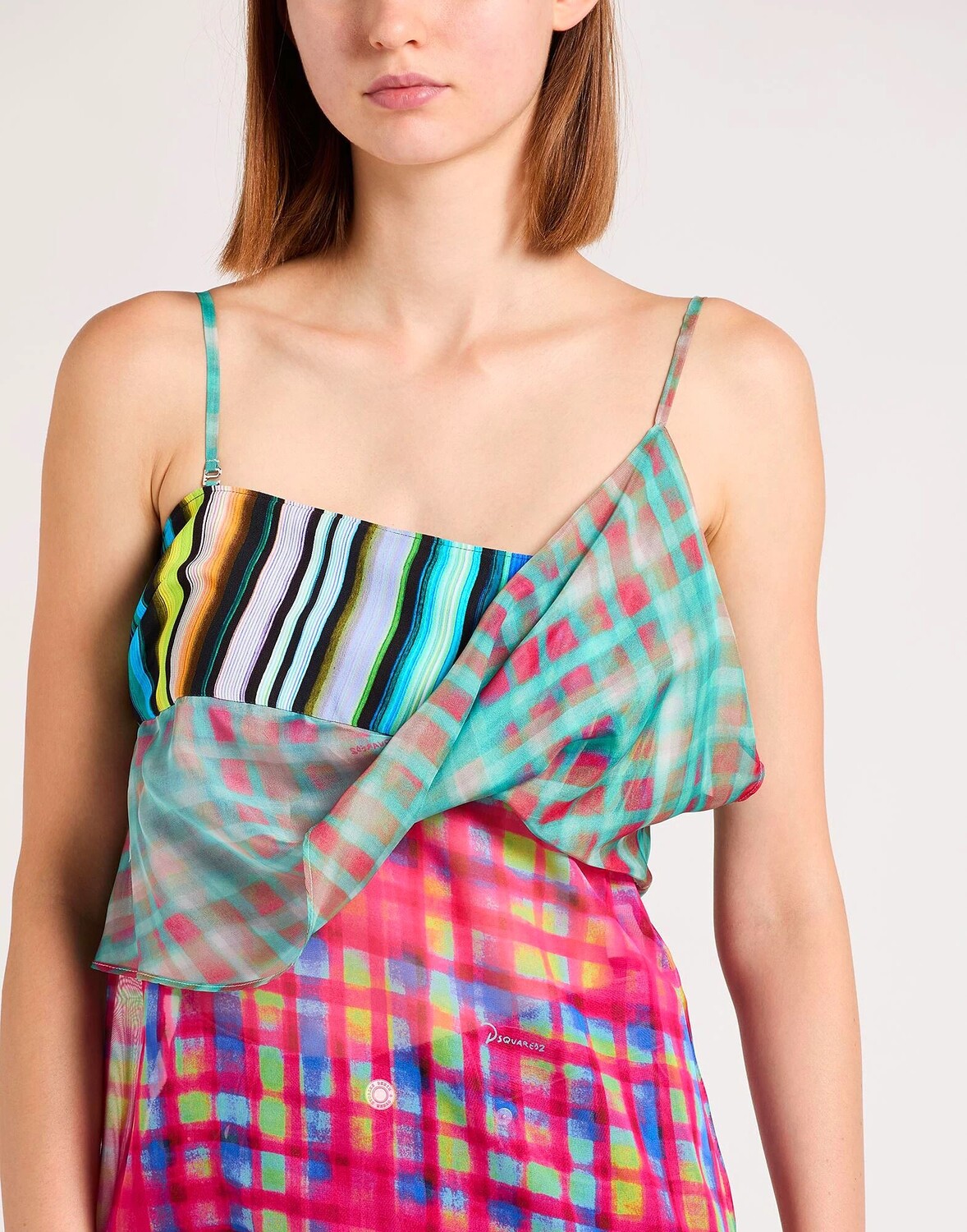 Топ на одно плечо, шифон, логотип бренда, драпированный, в клетку, в полоску, на одно плечо, застежка-молния, застежки-крючки, ручная стирка или химчистка, нельзя отбеливать, нельзя сушить в стиральной машине