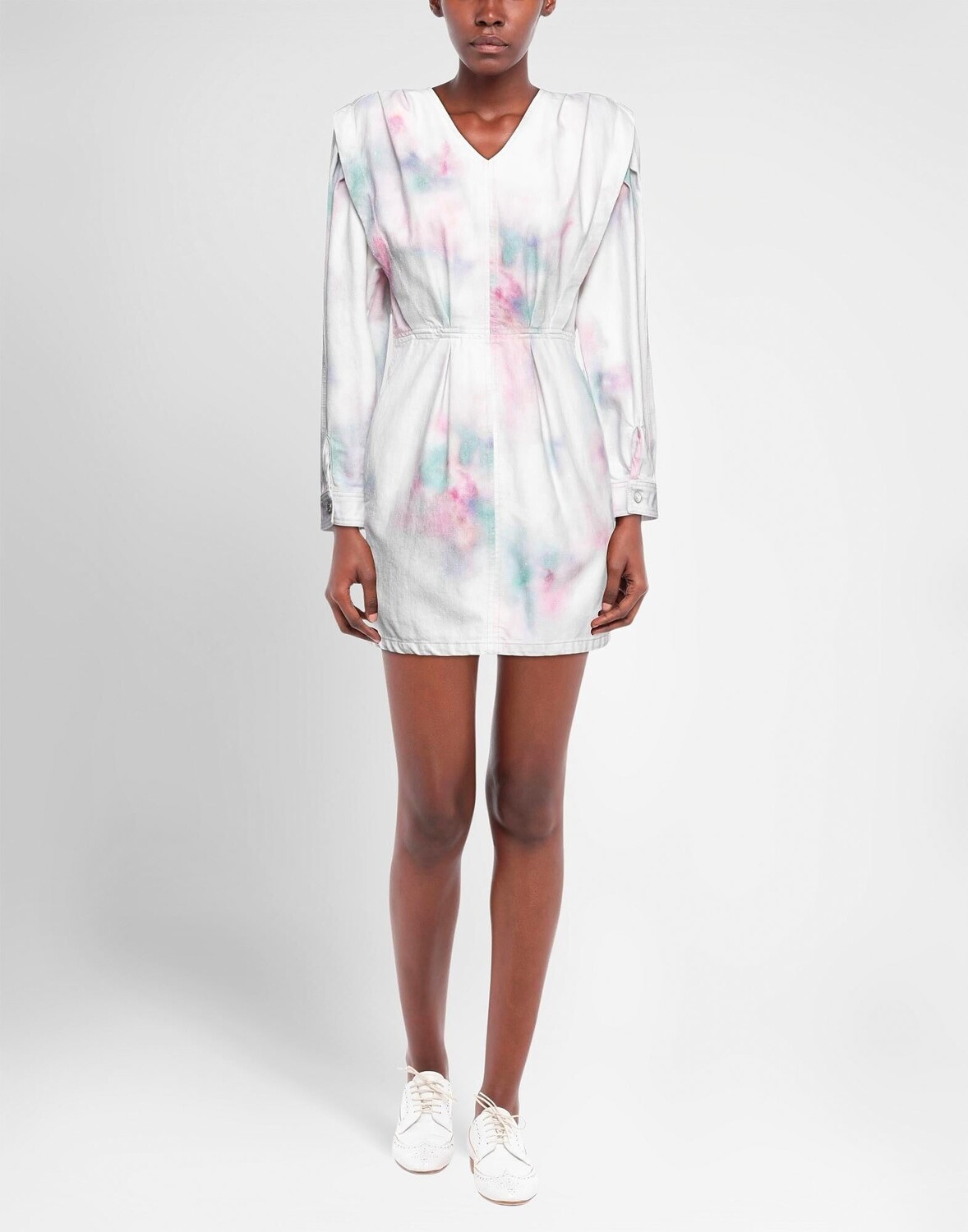 Деним, без аппликаций, разноцветный, v-образный вырез, длинные рукава, без подкладки, застежка-молния, множество карманов, платье