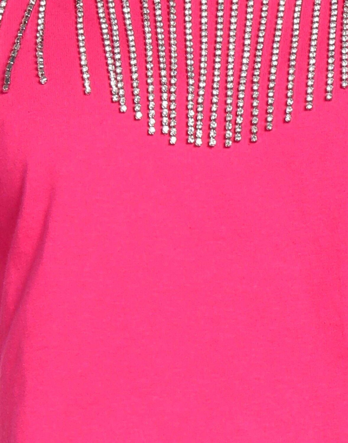 Джерси, кристаллы, бахрома, однотонное изделие с аппликациями, круглый вырез, короткие рукава, без карманов, укороченная футболка