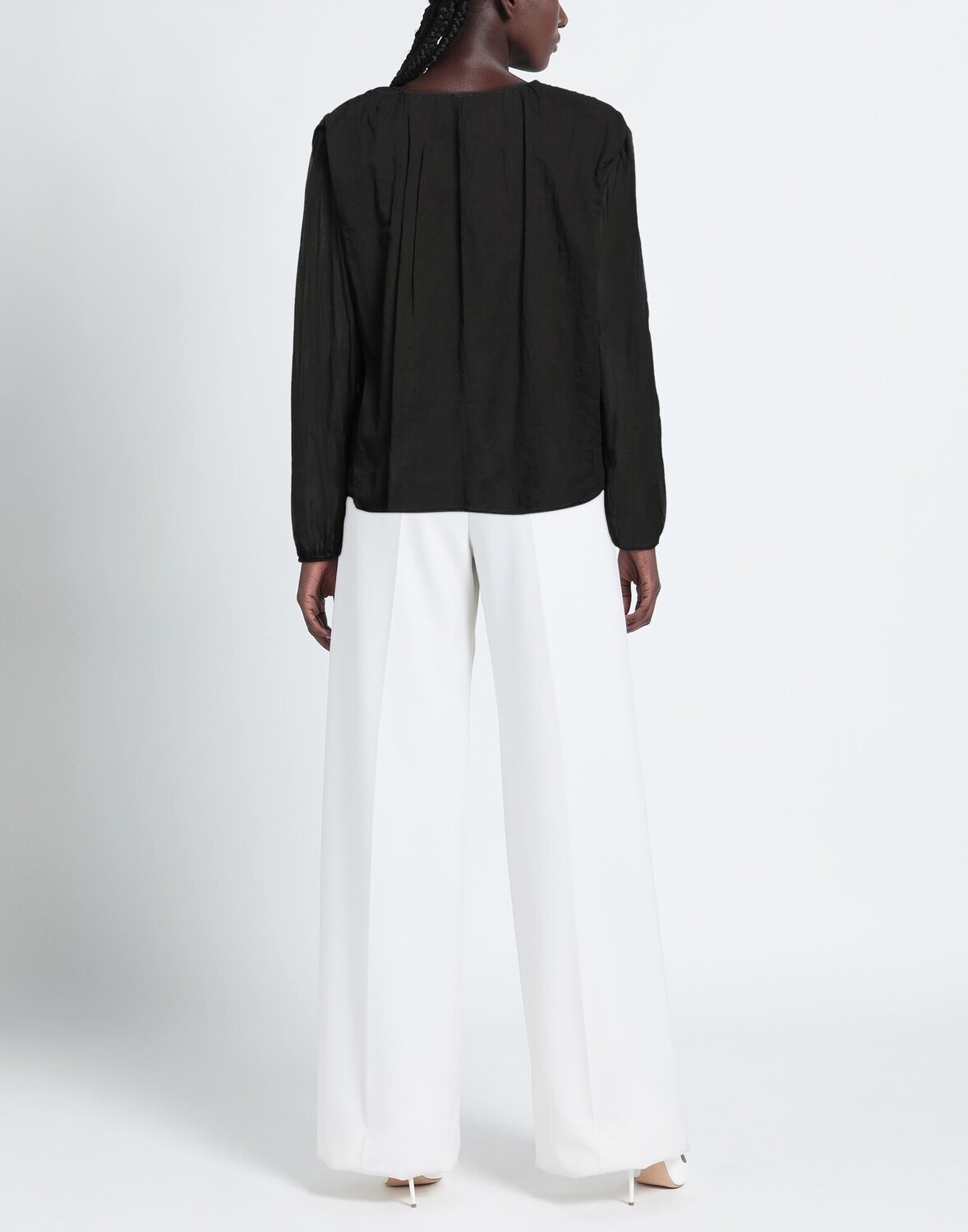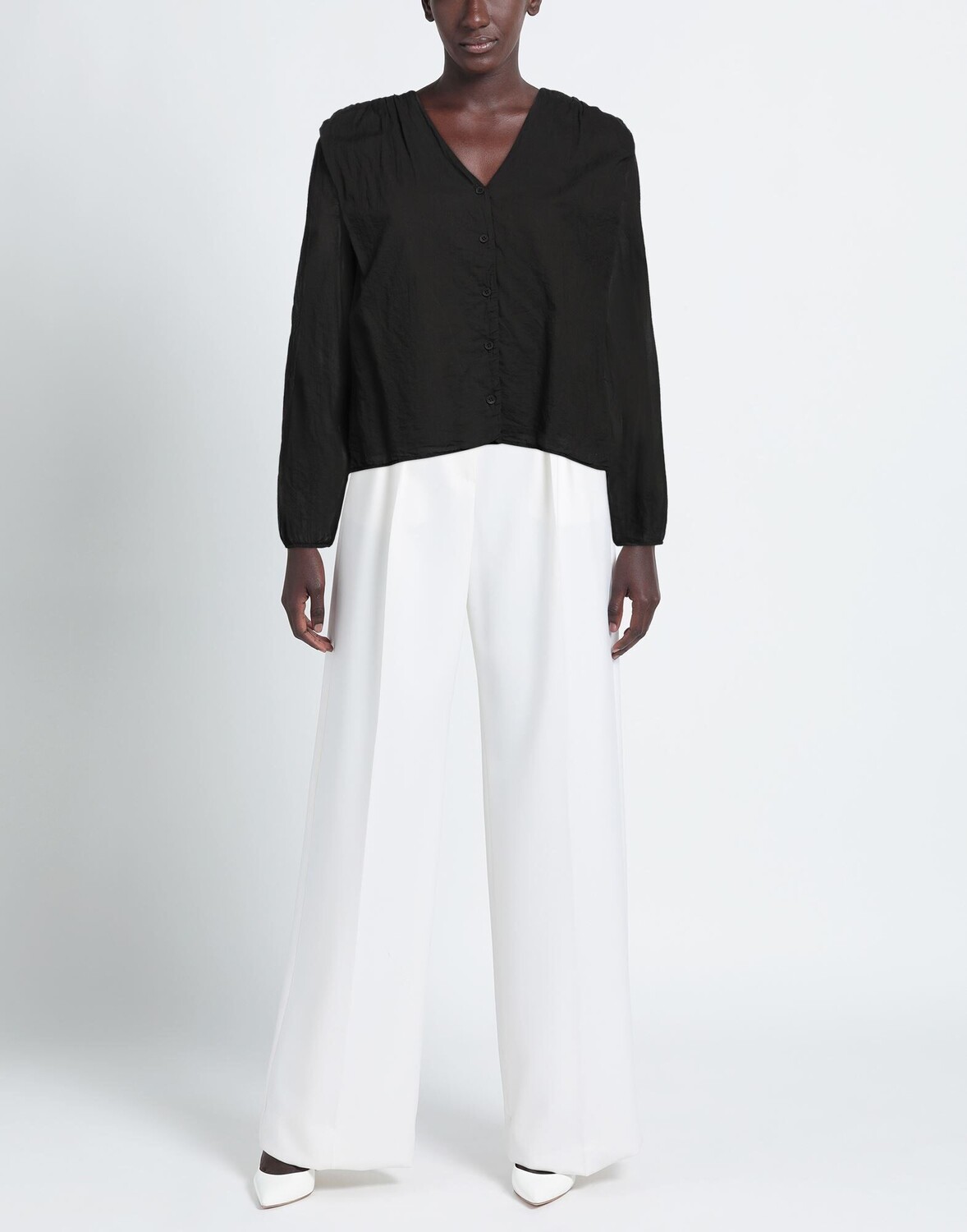Полотняное переплетение, без аппликаций, одноцветное изделие, v-образный вырез, длинные рукава, пуговицы, без карманов