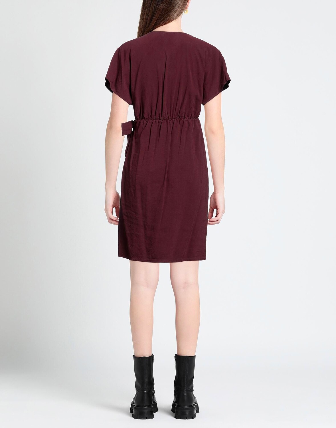 Полотняное переплетение, логотип бренда, одноцветное изделие, глубокий вырез, короткие рукава, без подкладки, завязка, без карманов, фасон-карандаш
