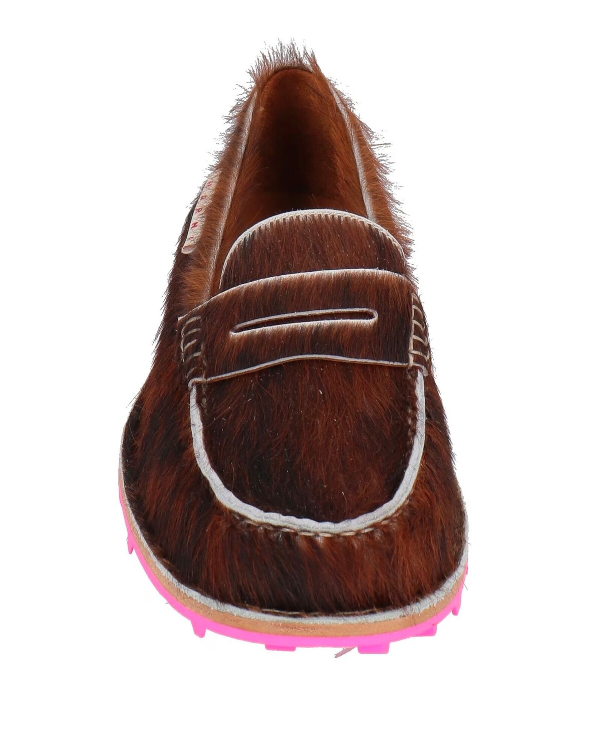 Телячий волос, логотип бренда, двухцветное изображение, подкладка из кожи, круглый носок, без каблука, резиновая подошва, содержит нетекстильные части животного происхождения, пенни-лоферы