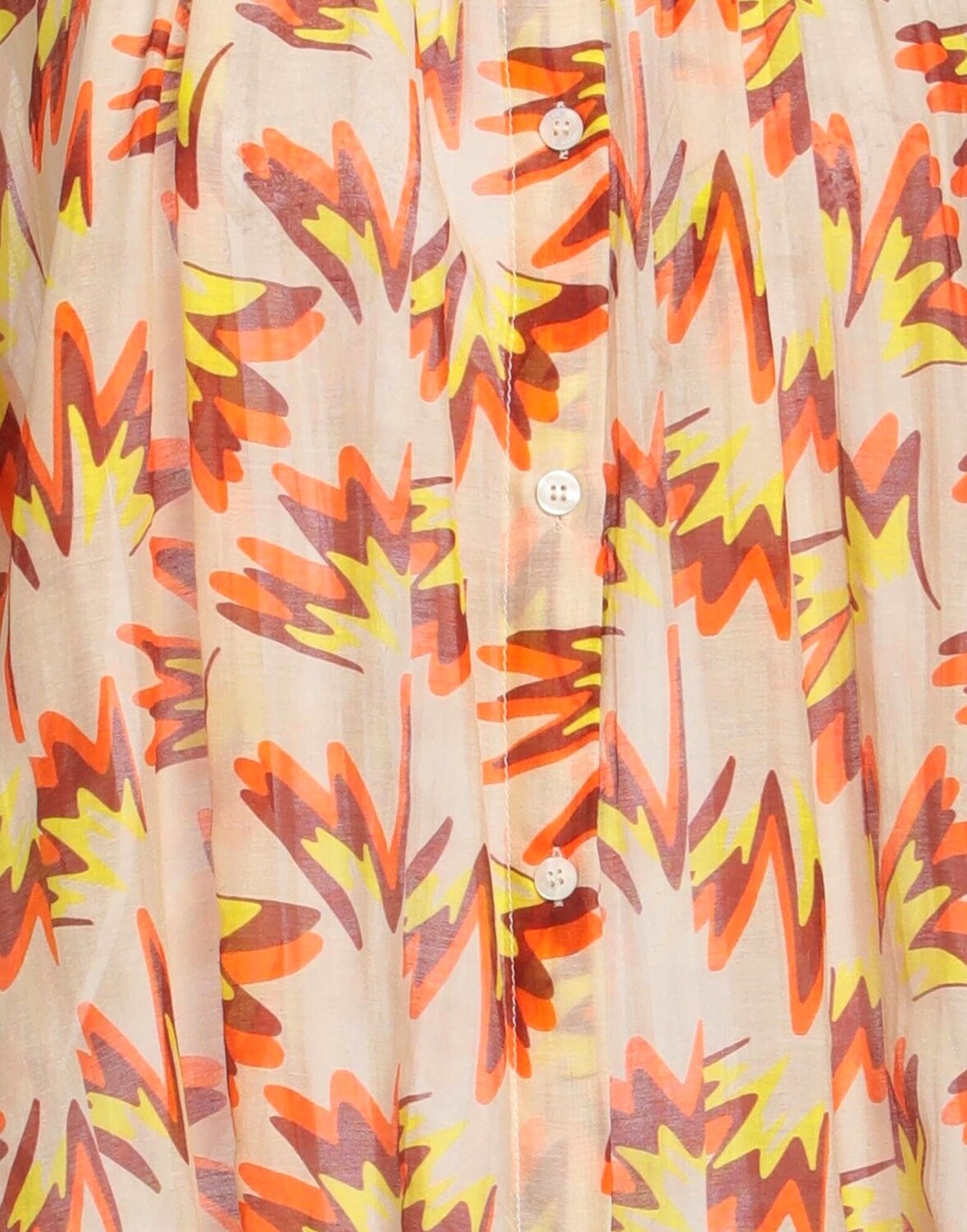 Полотняное переплетение, без аппликаций, разноцветный узор, воротник-стойка, короткие рукава, застежка на пуговицы, без карманов