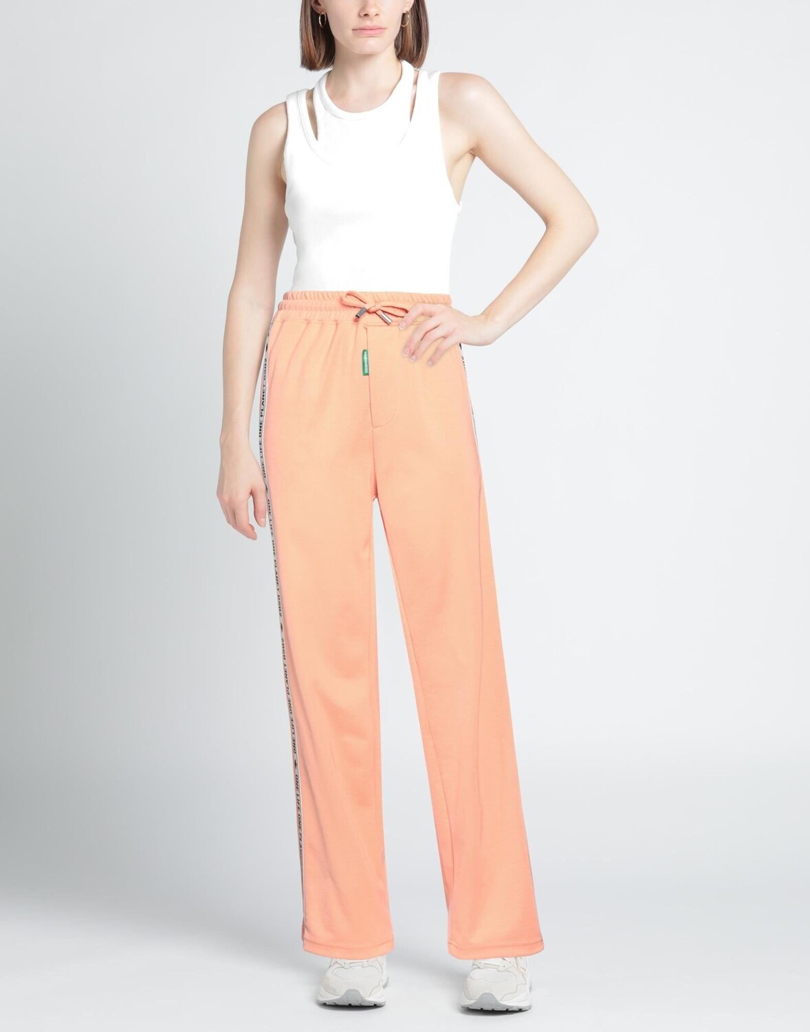 Джерси, полоски по боковым швам, логотип бренда, одноцветное изделие с аппликациями, завышенная талия, резинка на талии, прямые брючины, удобная посадка, застежка-кулиска, множество карманов, спортивные брюки