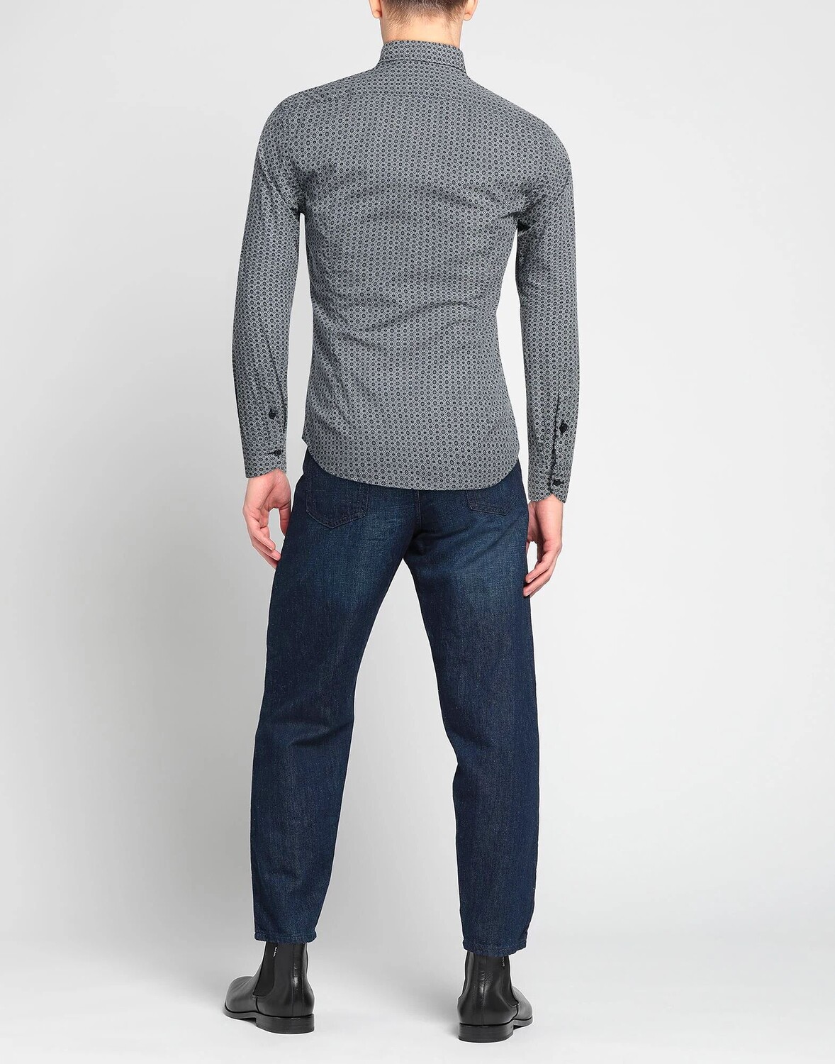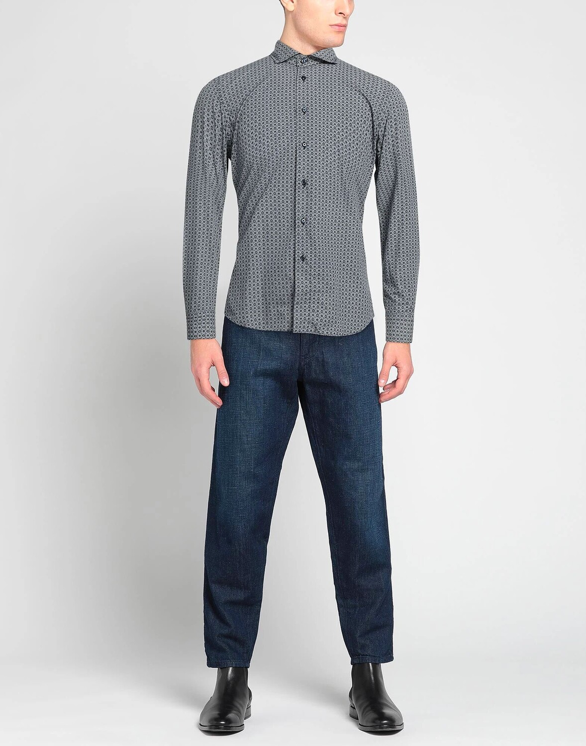 Ткань, без аппликаций, геометрический принт, классический воротник, длинные рукава, манжеты на пуговицах, застежка на пуговицы, без карманов, рубашка приталенного кроя