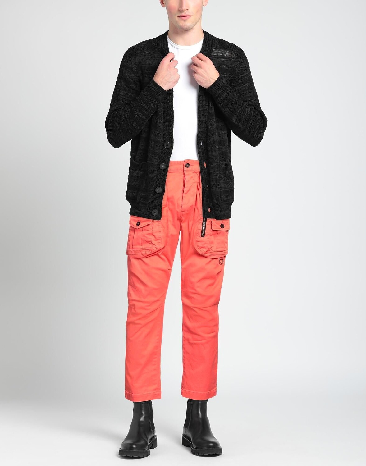 Брюки-карго, габардин, одноцветное изделие, логотип бренда, завышенная талия, шлевки для ремня, стандартный крой, застежка на пуговицы, множество карманов, эластичный, нельзя стирать, нельзя отбеливать, нельзя сушить в стиральной машине, нельзя гладить