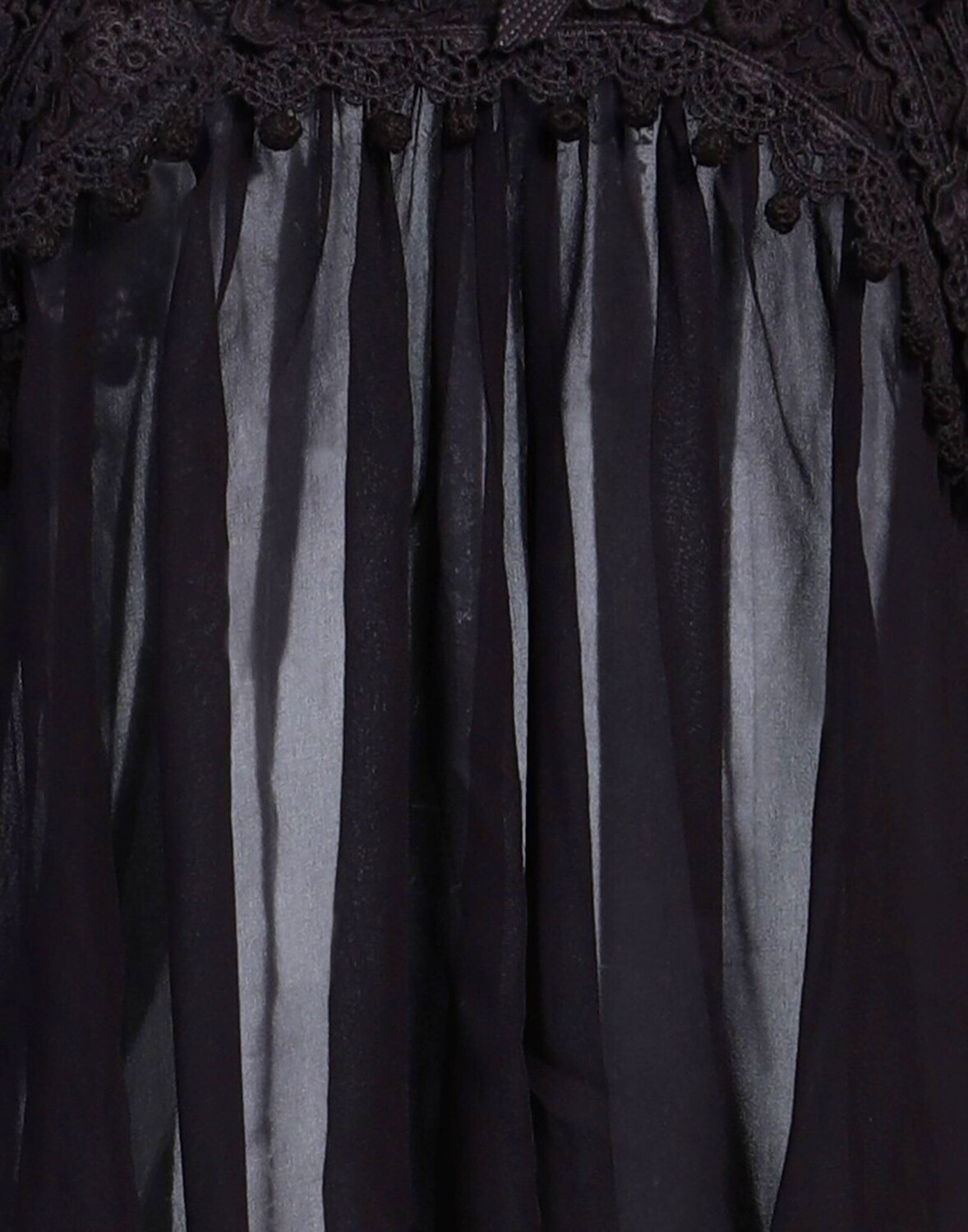 Шифон, кружево, присборки, одноцветное изделие, круглый вырез, длинные рукава, 3 пуговицы, без карманов, верх с баской