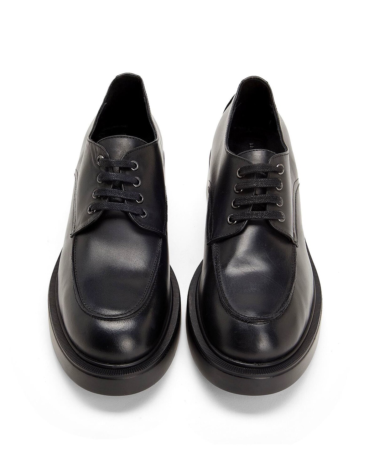 Эти туфли на шнуровке, представляющие собой новую интерпретацию классической обуви дерби, выполнены из однотонной кожи. Сделанные в Италии, они отличаются толстой резиновой подошвой и низким каблуком.