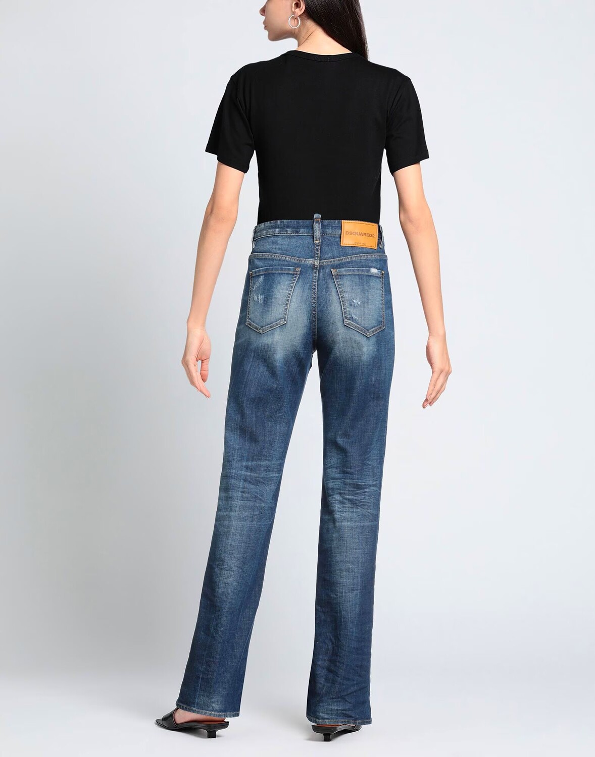 Деним, выцветший, рваная ткань, логотип бренда, кожаные аппликации, одноцветное изделие, средняя стирка, завышенная талия, шлевки для ремня, прямые брючины, стандартный крой, пуговицы, пять карманов, стрейч, содержит нетекстильные части животного происхождения, модель скинни