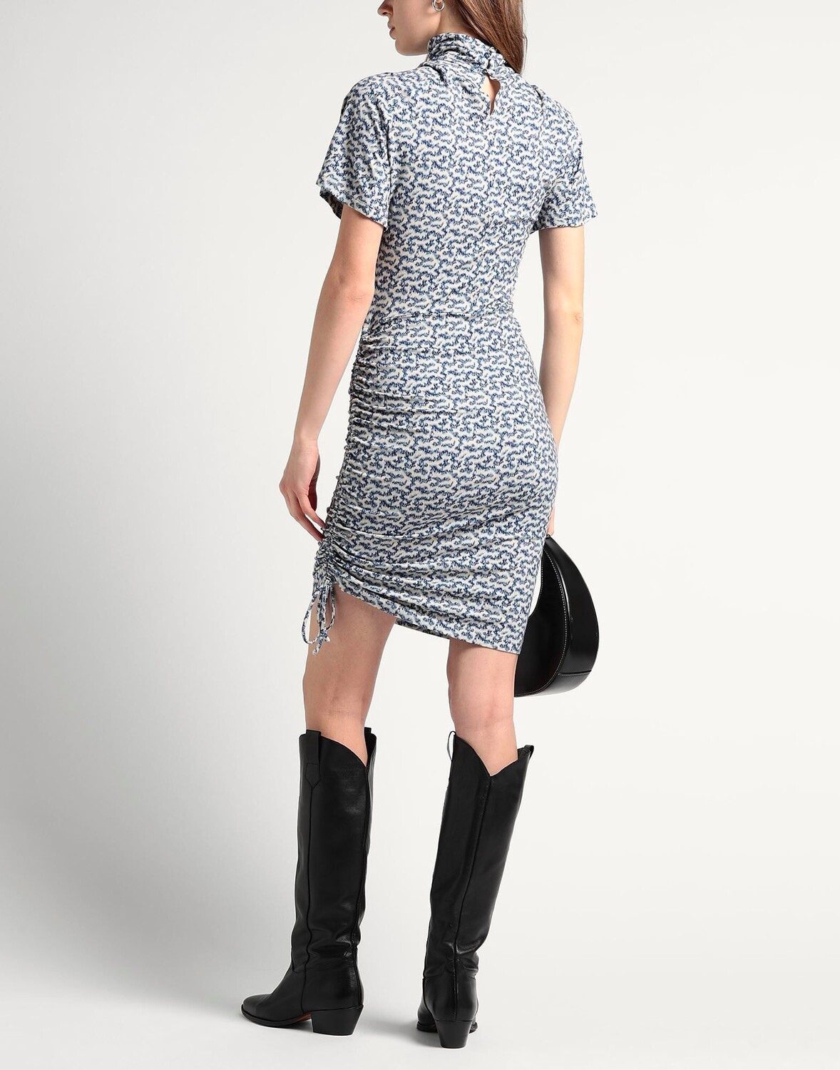 Трикотаж, присборенный, двухцветный, водолазка, короткие рукава, без подкладки, без карманов, стрейч, машинная стирка или химчистка, не отбеливать, нельзя сушить в стиральной машине, облегающее платье