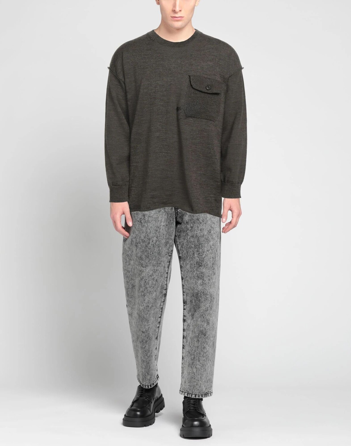Шерсть, легкий трикотаж, логотип бренда, меланж, круглый вырез, длинные рукава, один нагрудный карман, ручная стирка или химчистка, нельзя отбеливать, нельзя сушить в стиральной машине, предназначен для свободного кроя