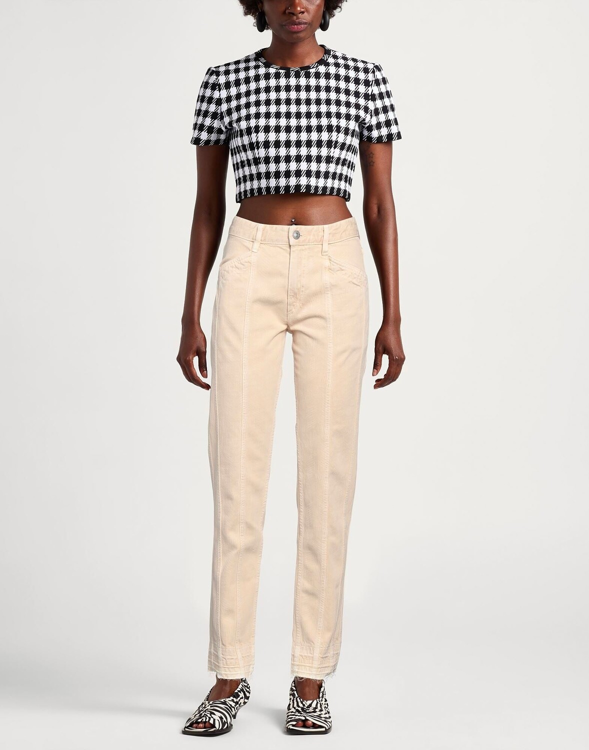 Зауженные джинсы, джинсовая ткань, кожаная отделка, логотип бренда, одноцветное изделие, цветная стирка, высокая талия, стандартный крой, застежка на пуговицы, застежка-молния, множество карманов, машинная стирка или химчистка, не отбеливать, нельзя сушить в стиральной машине, содержит нетекстильные материалы части животного происхождения