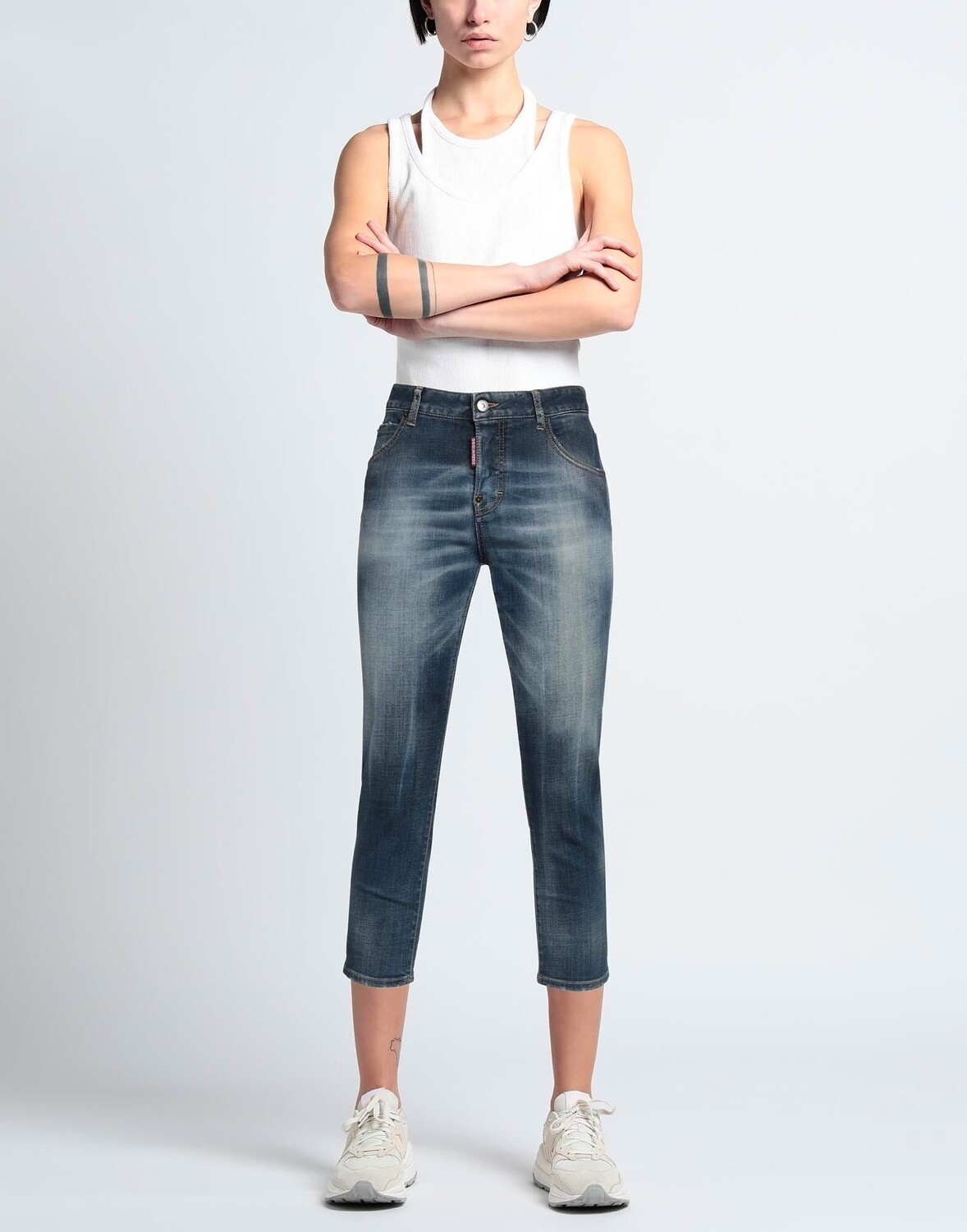 Деним, потертости, выцветшие, металлические аппликации, логотип бренда, одноцветное изделие, средняя потертость, средняя посадка, прямые брюки, узкие брюки, застежка на пуговицах, множество карманов, модель скинни
