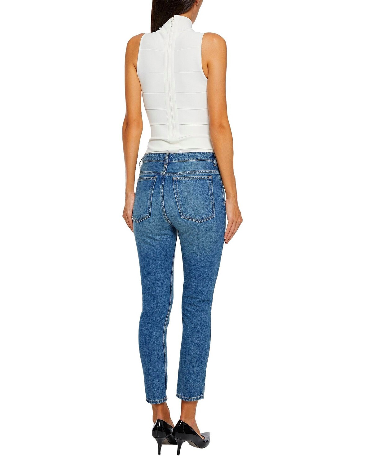 Деним, выцветший, без аппликаций, одноцветное изделие, средняя степень стирки, высокая талия, застежка спереди, пуговица, молния, множество карманов