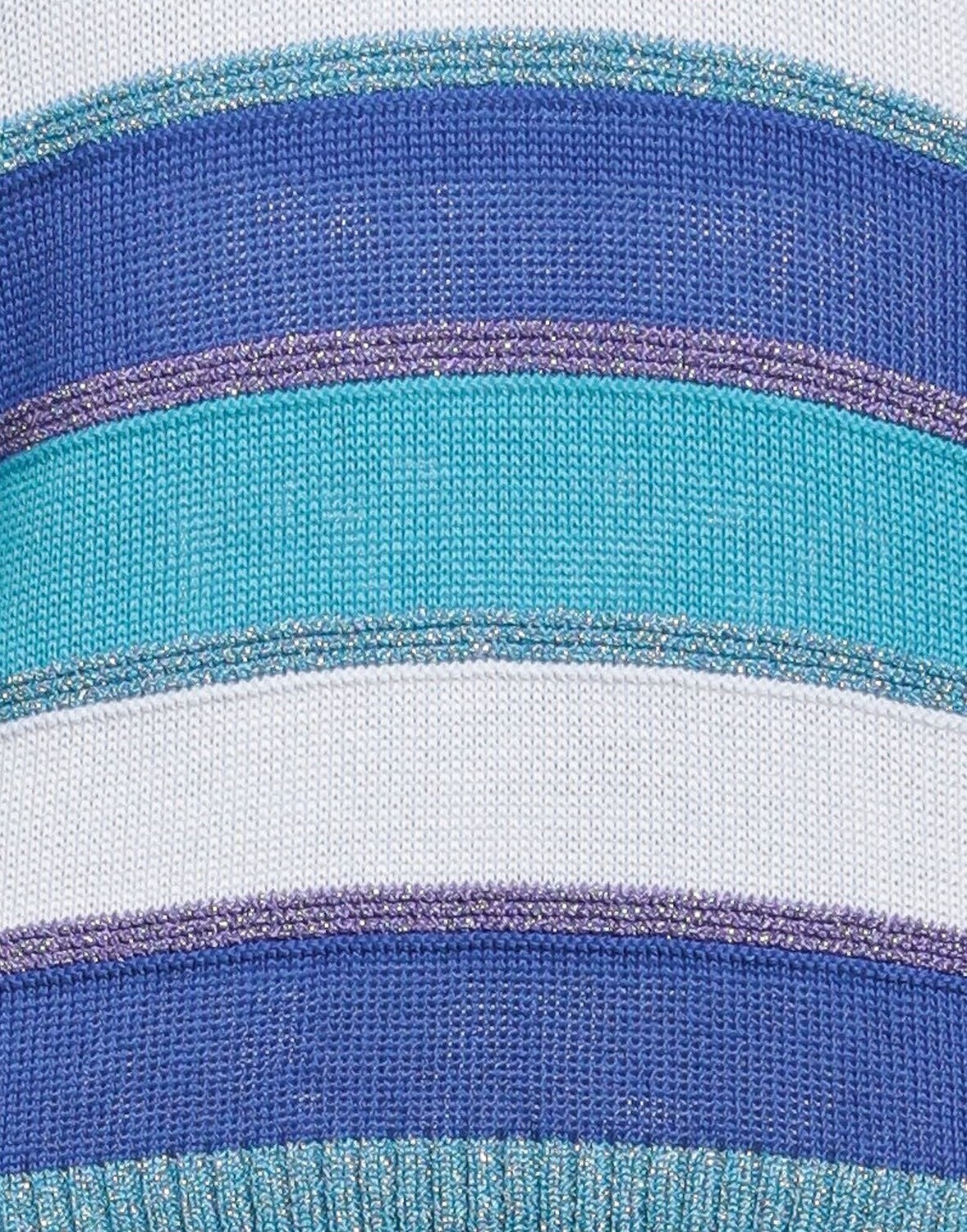Трикотаж, ламе, легкая вязка, логотип бренда, стразы, полоски, разноцветный узор, v-образный вырез, короткие рукава, без карманов
