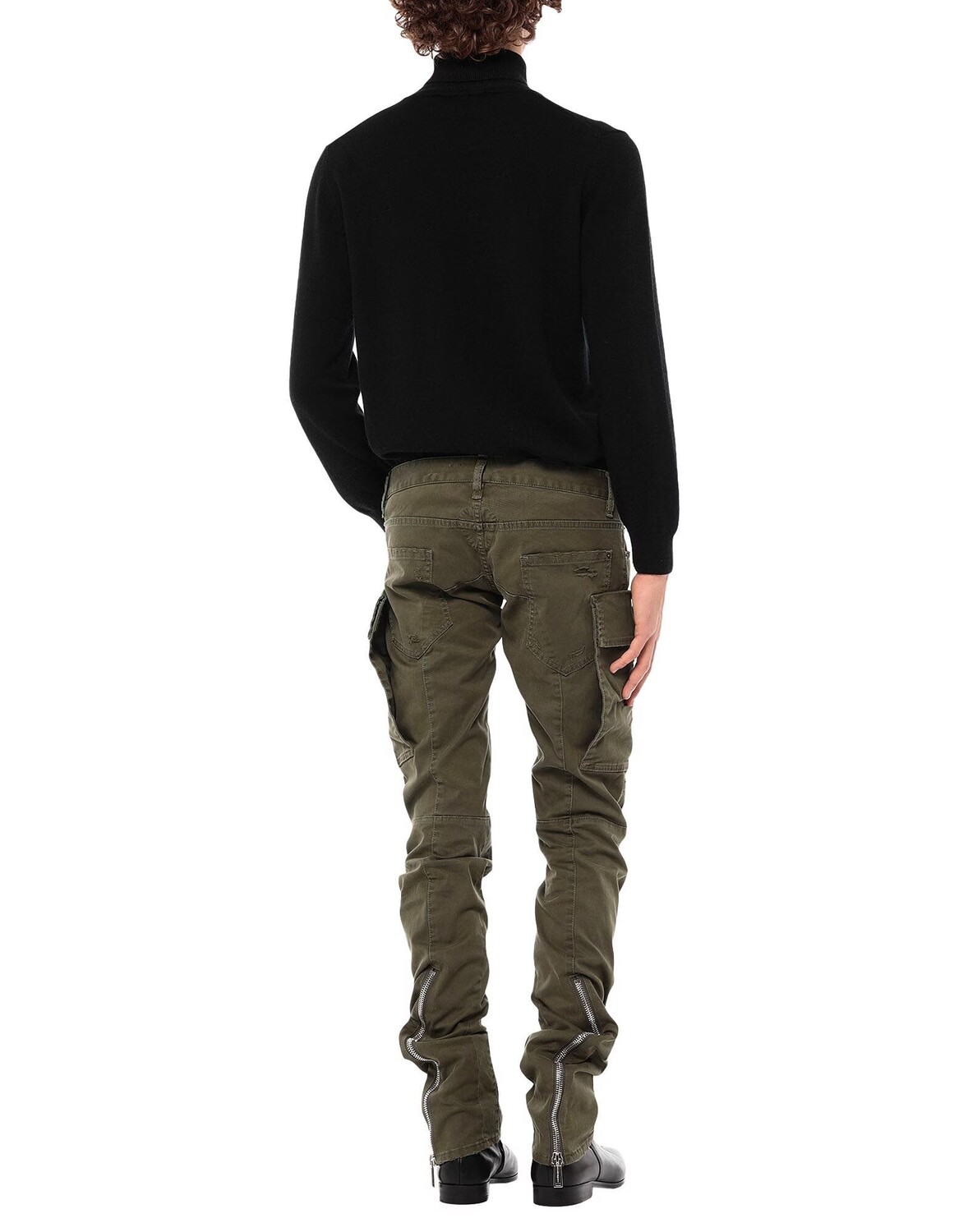 Саржа, одноцветное изделие, рваная ткань, без аппликаций, заниженная талия, классический крой, прямые брючины, пуговицы, множество карманов, молнии по низу, стрейч