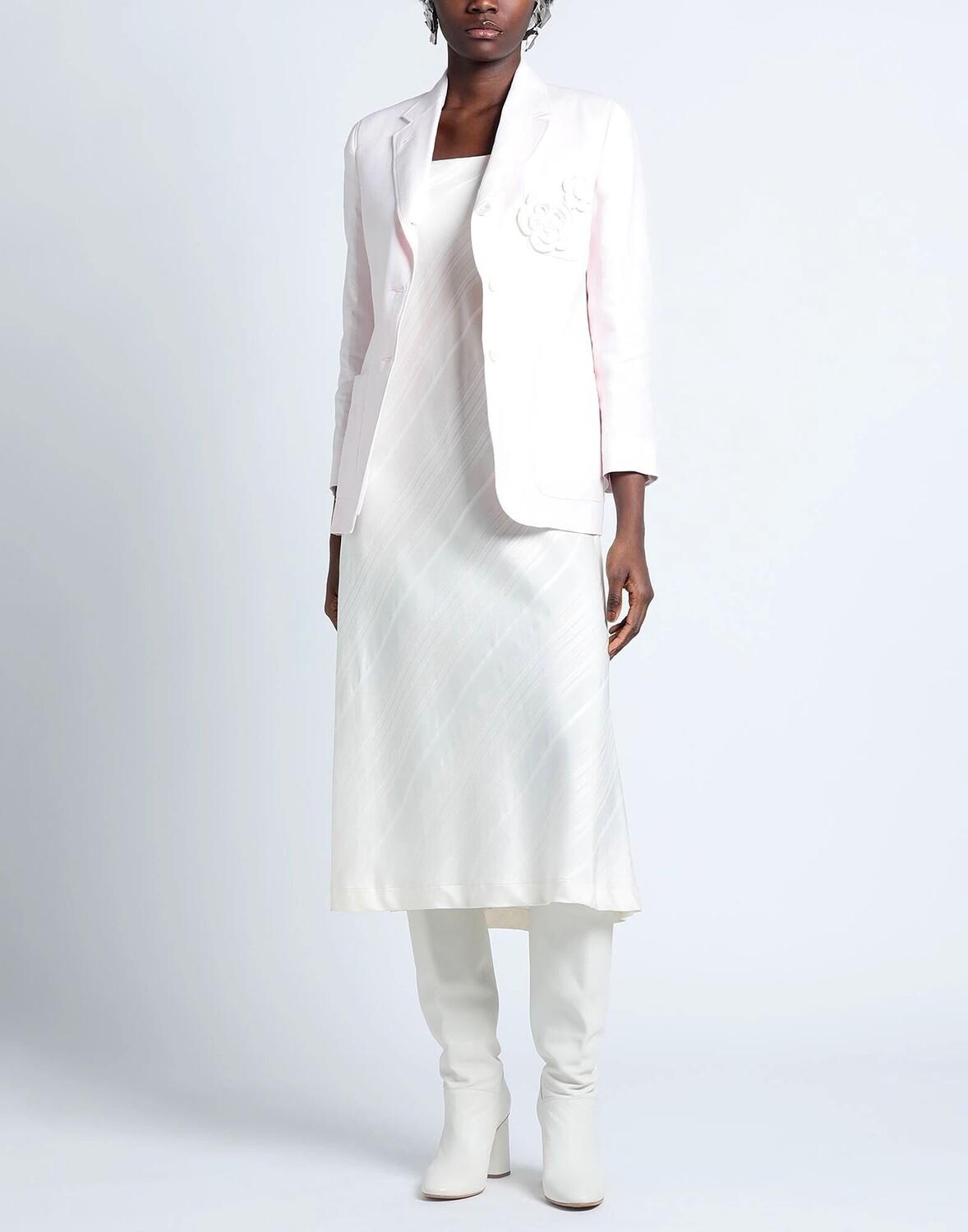 Полотняное переплетение, цветочная аппликация, однотонный цвет с аппликациями, воротник с лацканами, однобортный, длинные рукава, на подкладке, пуговицы, множество карманов, однобортный пиджак