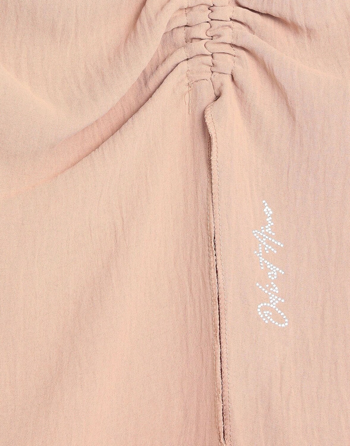 Расклешенная юбка, креп, одноцветное изделие, присборенные, логотип бренда, средняя посадка, резинка на талии, без подкладки, разрез спереди, без карманов, стрейч