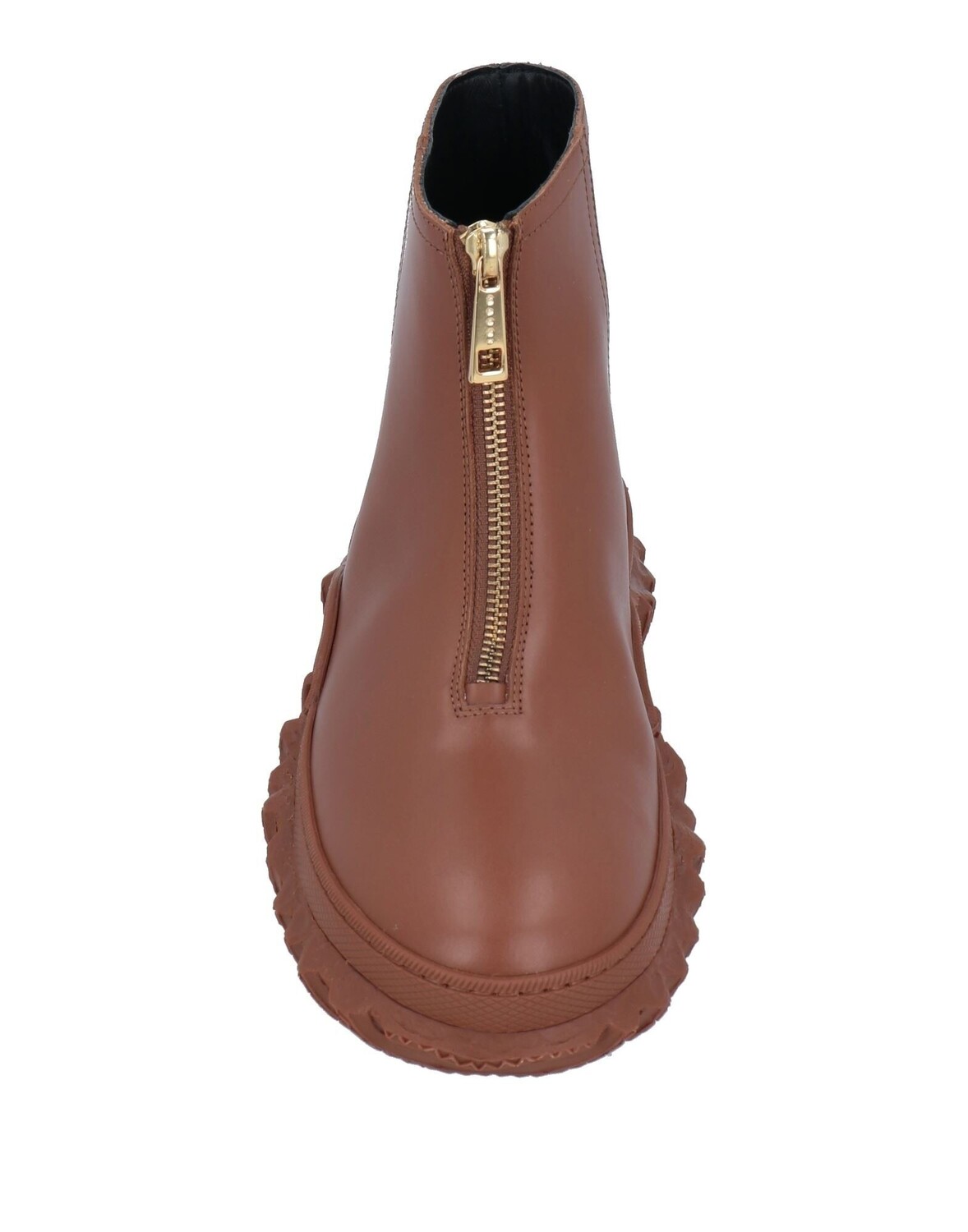 Кожа, логотип бренда, одноцветное изделие, кожаная подкладка, застежка-молния, скругленный носок, без каблука, резиновая подошва с тиснением, содержит нетекстильные части животного происхождения, массивные ботинки