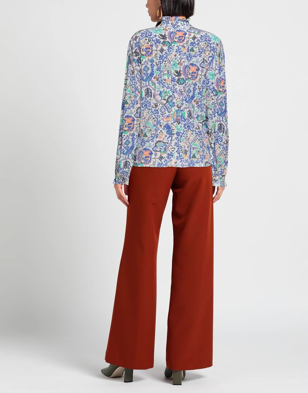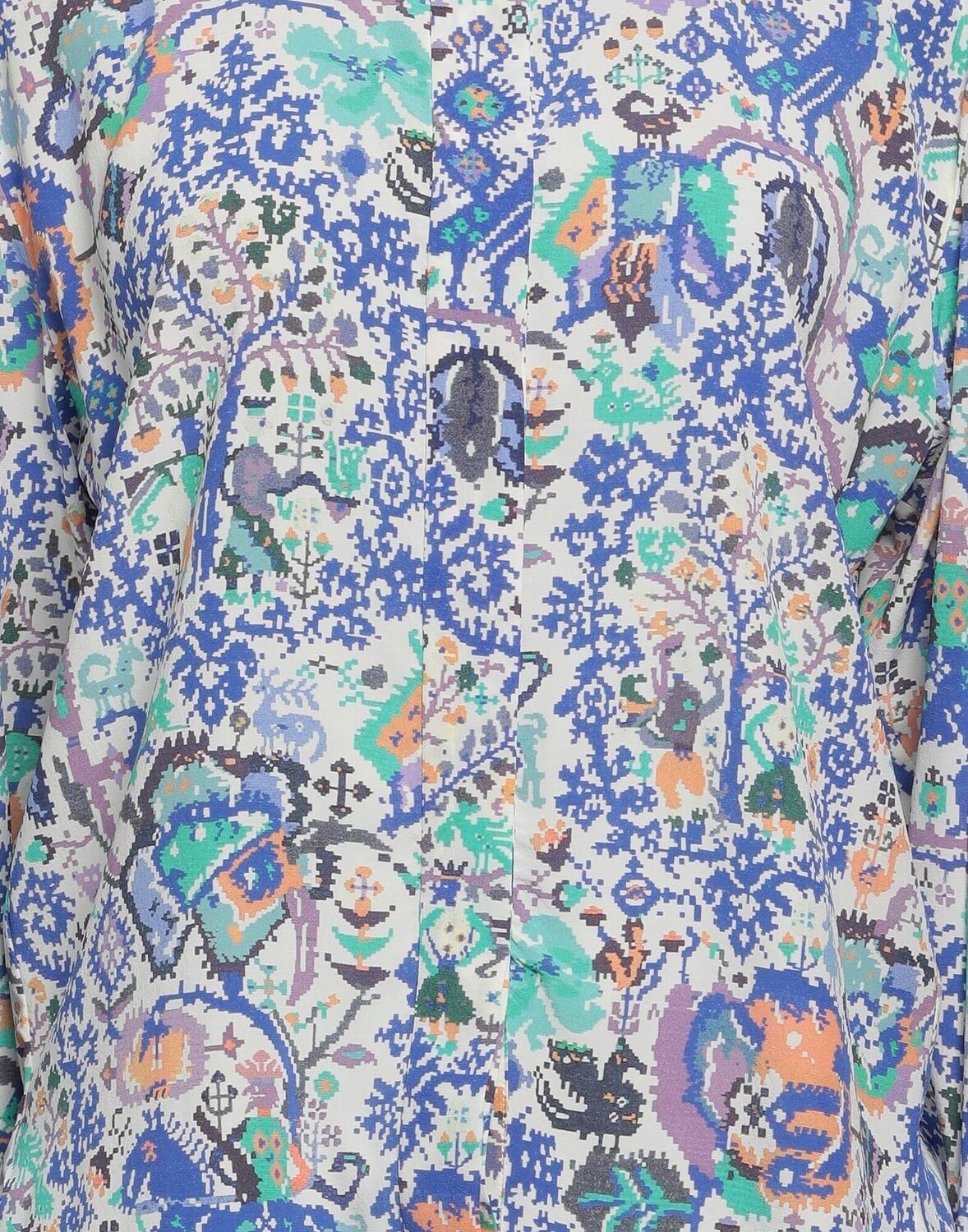 Креп, без аппликаций, разноцветный узор, круглый воротник, длинные рукава, манжеты на пуговицах, застежка на пуговицы, без карманов